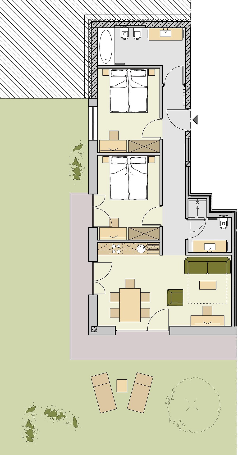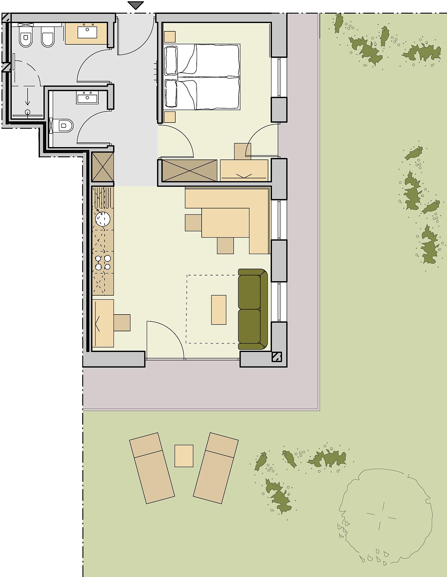 Equipment: Double bed , Cot, Double sofa bed, Terrace, Garden , Handicapped accessible, Bed linen provided, Safe, Non-smoking apartment, Located on the ground floor, Eat-in kitchen, Coffee machine, Dishwasher, Electric cooker, Cutlery provided, Hob, Shower/Bath tub, Separate WC, Bidet, Hair dryer, Towels, TV, Satellite/Cable, WLAN, Final cleaning included, Main building, South view