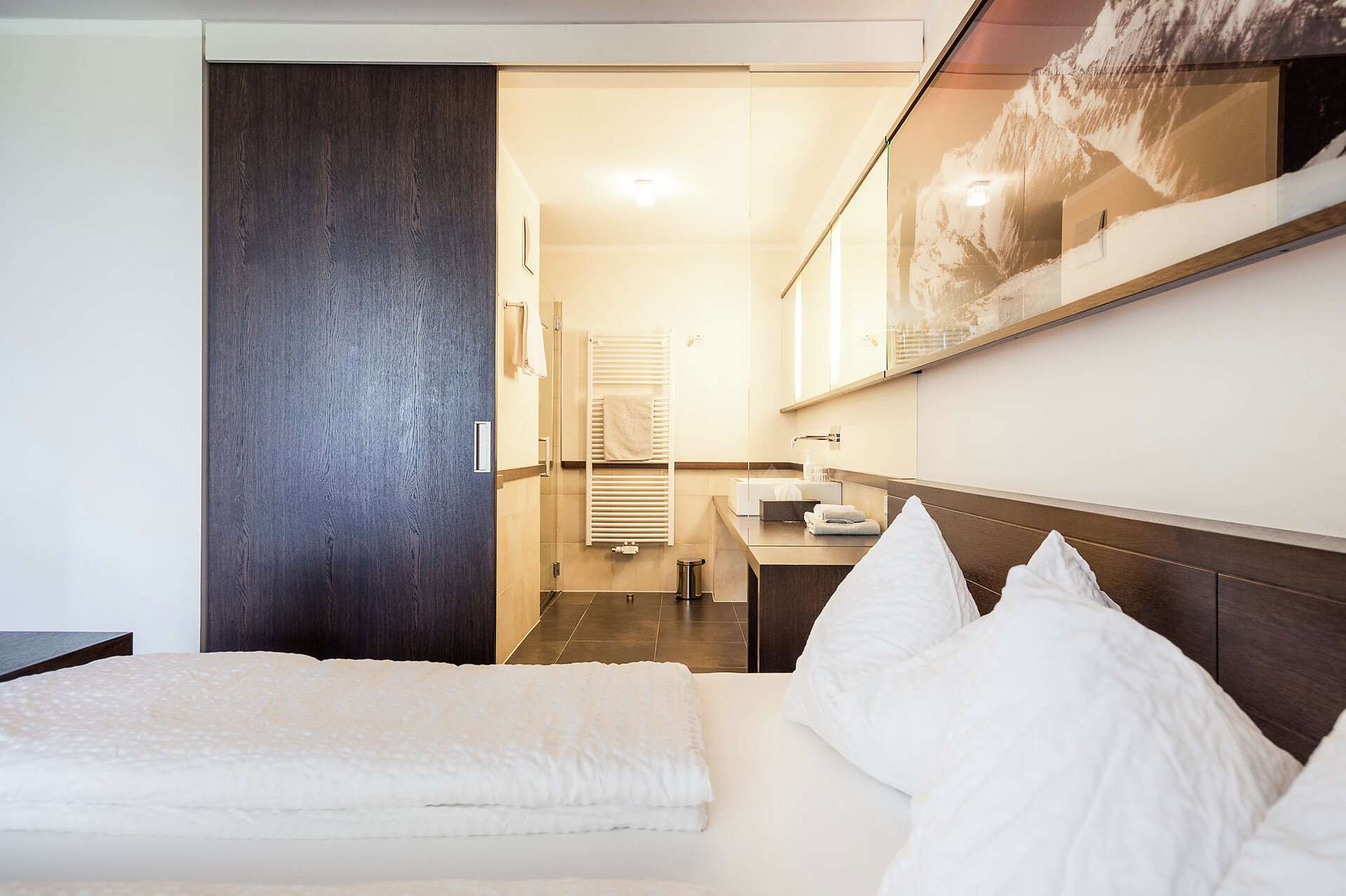The Hotel Dolomitenblick offers 2 double rooms for guests with special needs. An elevator (130 x 100 cm) takes you to the room floor, where you still have to overcome a step in the corridor via a mobile ramp. The room is spacious, but has a relatively uncomfortable bathroom. The internal hotel areas are accessible with some difficulty. A convenient parking lot is available.