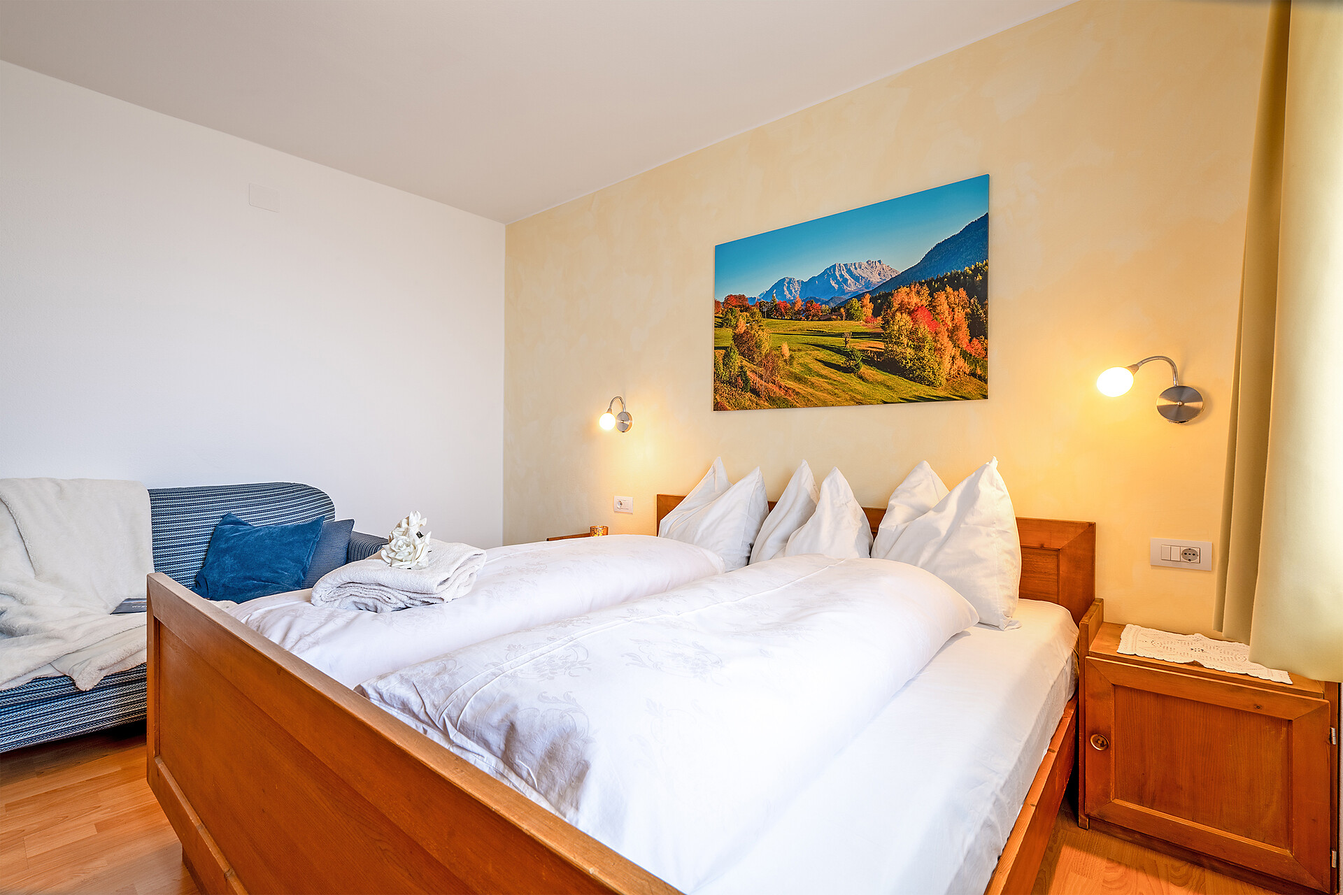 Double bed , Extra bed, Cot, Sofa bed, Double sofa bed, Balcony, Separate living area, Bed linen provided, Eat-in kitchen, Coffee machine, Gas cooker, Electric cooker, Cutlery provided, Shower/Bath tub, Bidet, Hair dryer, Towels, TV, Satellite/Cable, WLAN, Final cleaning included, Main building, Panoramic view, South view