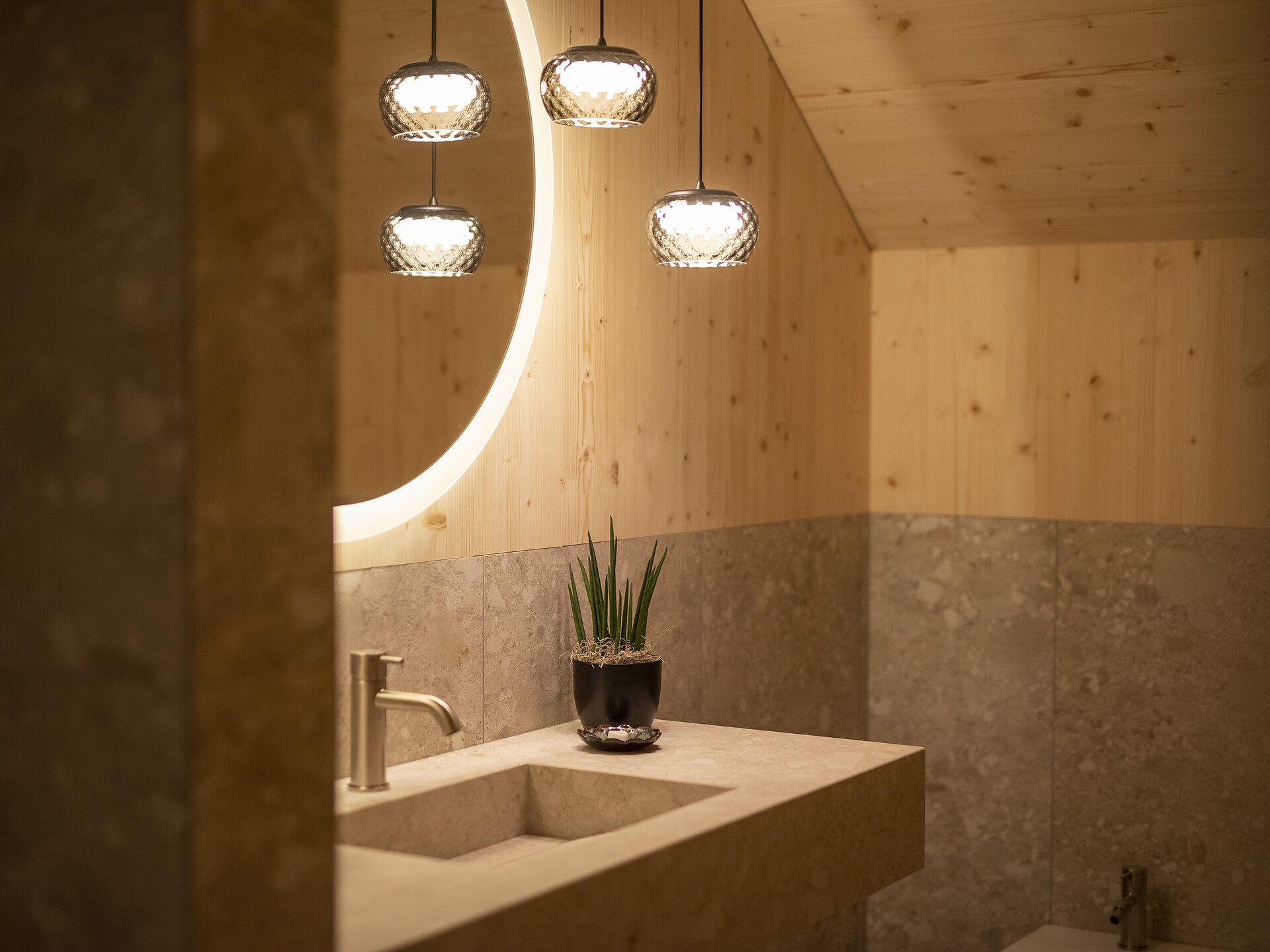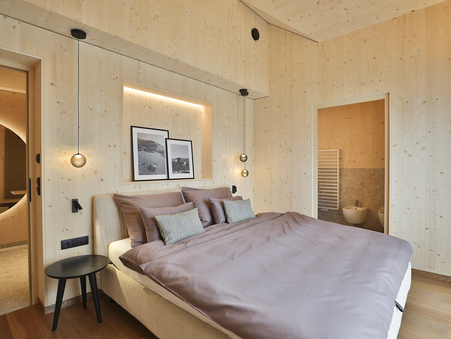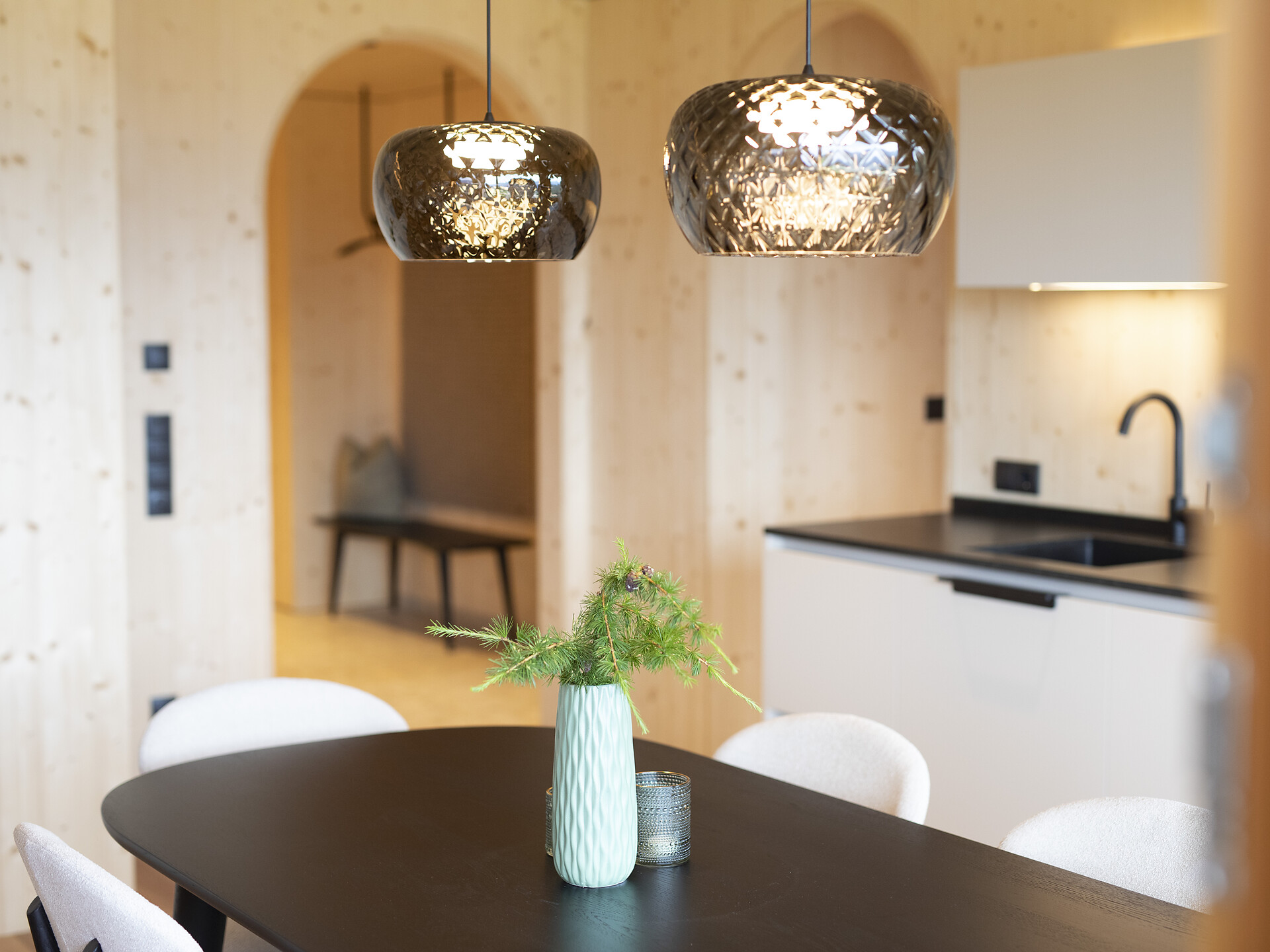 Very cozy wooden chalet, built and furnished with high quality materials. Panoramic windows, fireplace, sauna, sun terrace and green area - these are just some of the great features of the holiday home. 3 double bedrooms, each with its own bathroom, can accommodate a family or 6 adults.