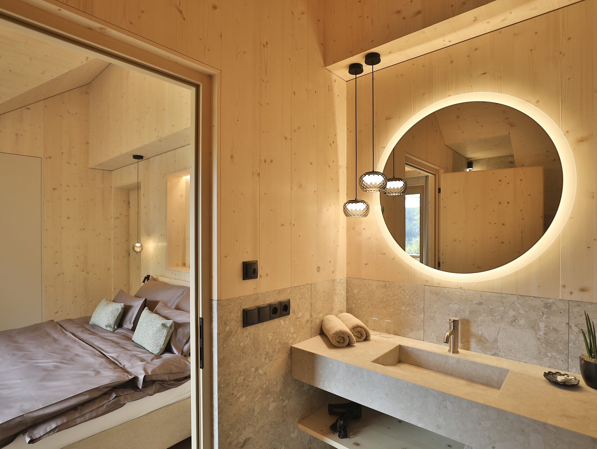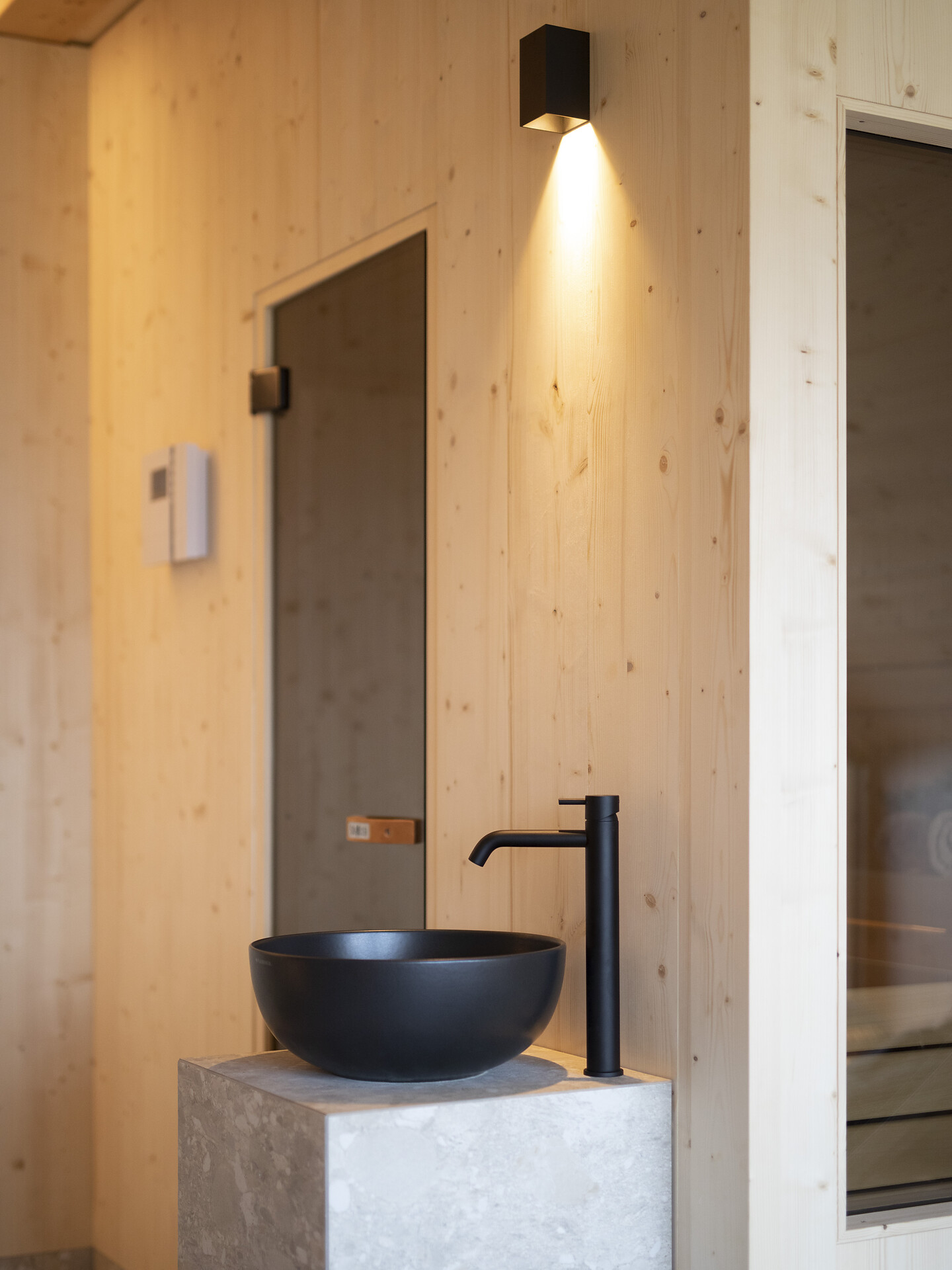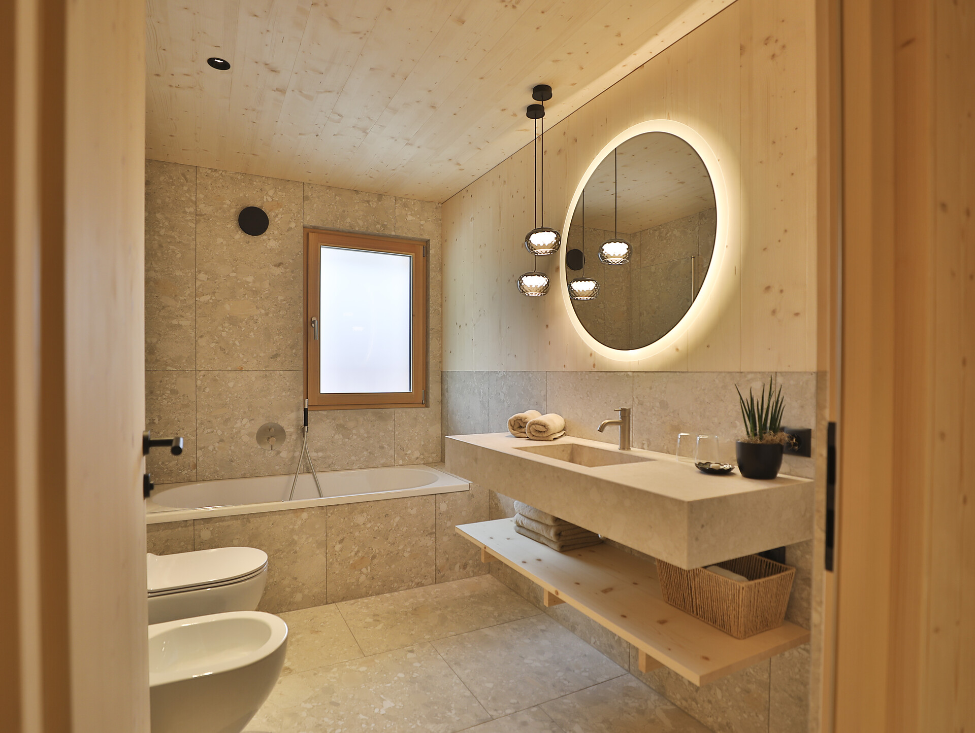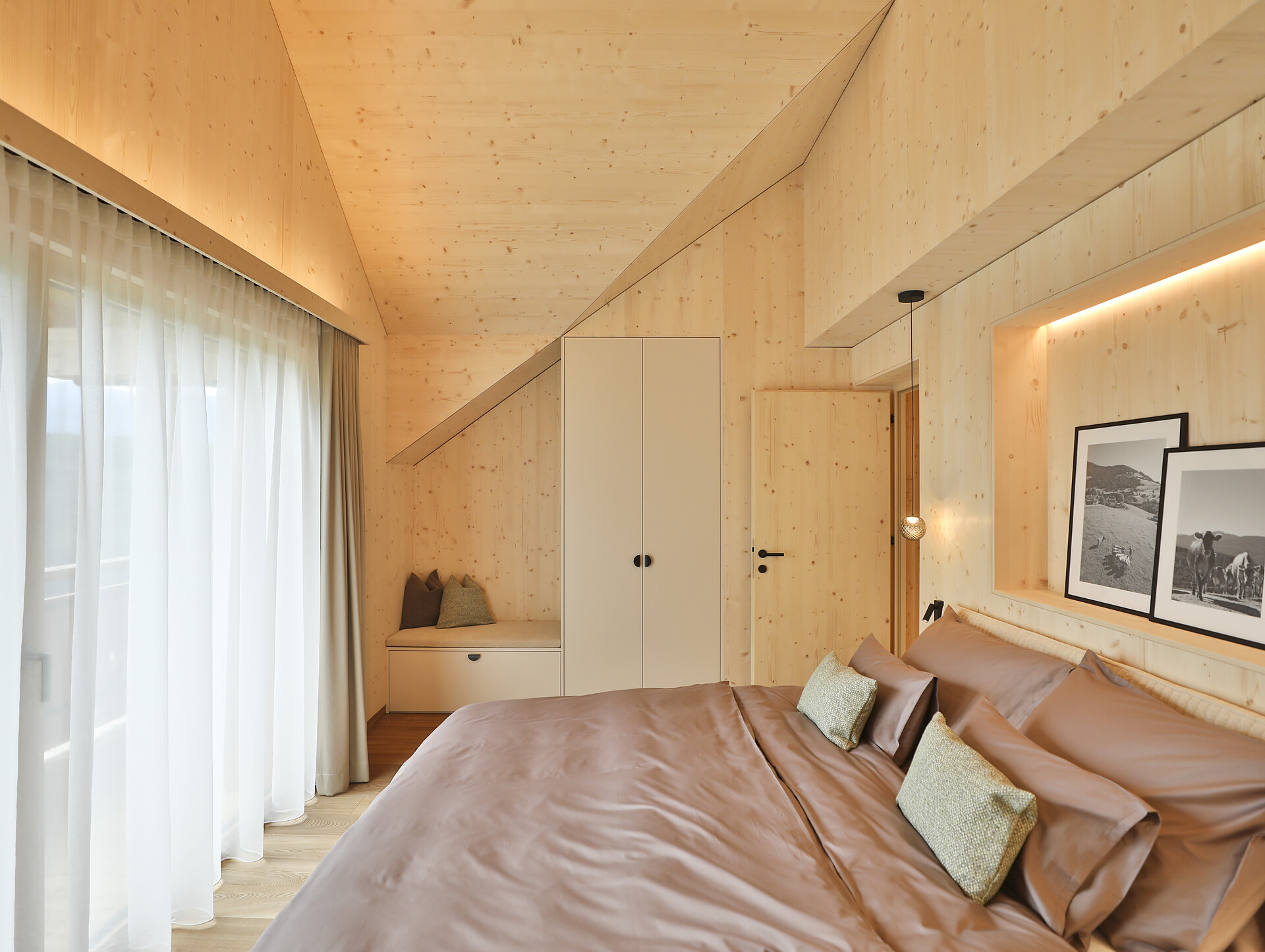 Very cozy wooden chalet, built and furnished with high quality materials. Panoramic windows, fireplace, sauna, sun terrace and green area - these are just some of the great features of the holiday home. 3 double bedrooms, each with its own bathroom, can accommodate a family or 6 adults.