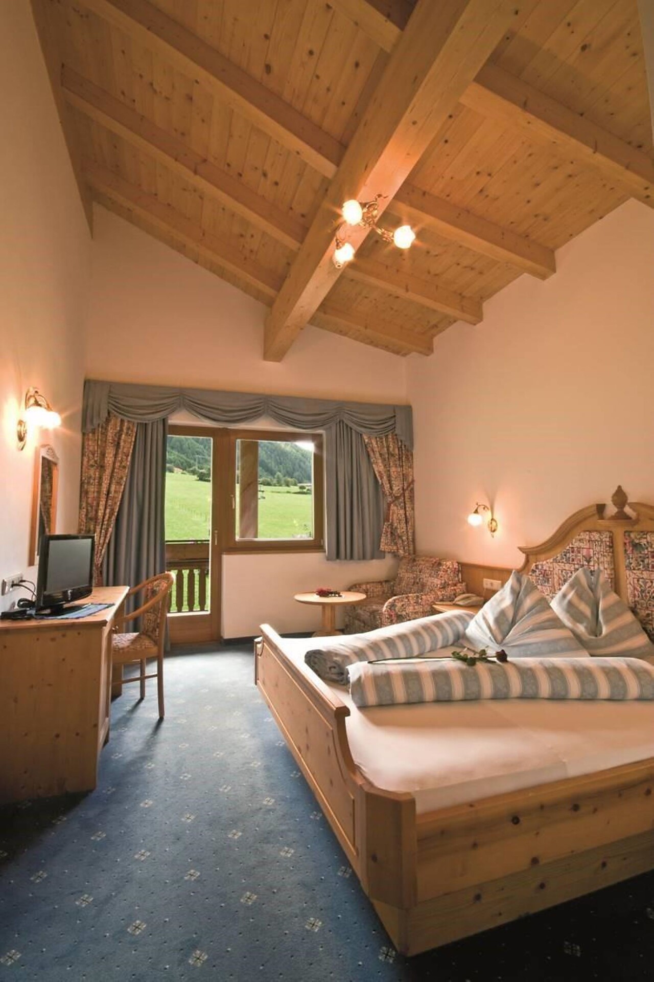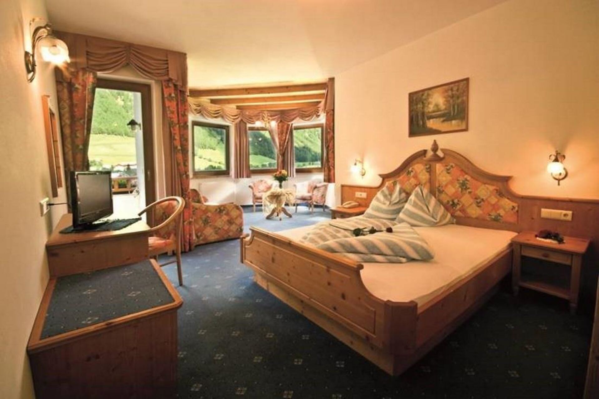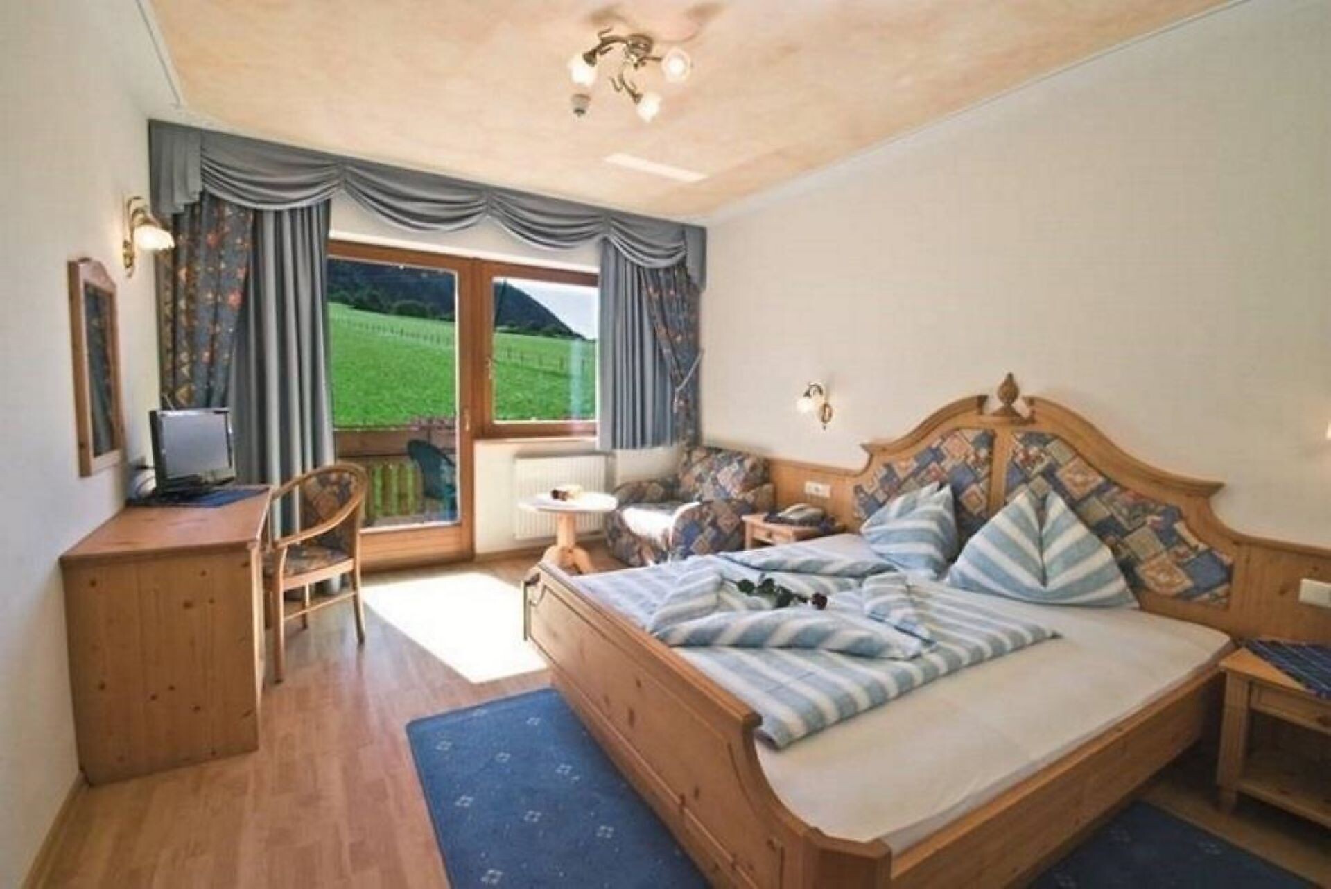 Double room, Single bed, Double bed , Extra bed, Balcony, Terrace, Shower / Bath tub, TV, Internet access, Main building, South view
