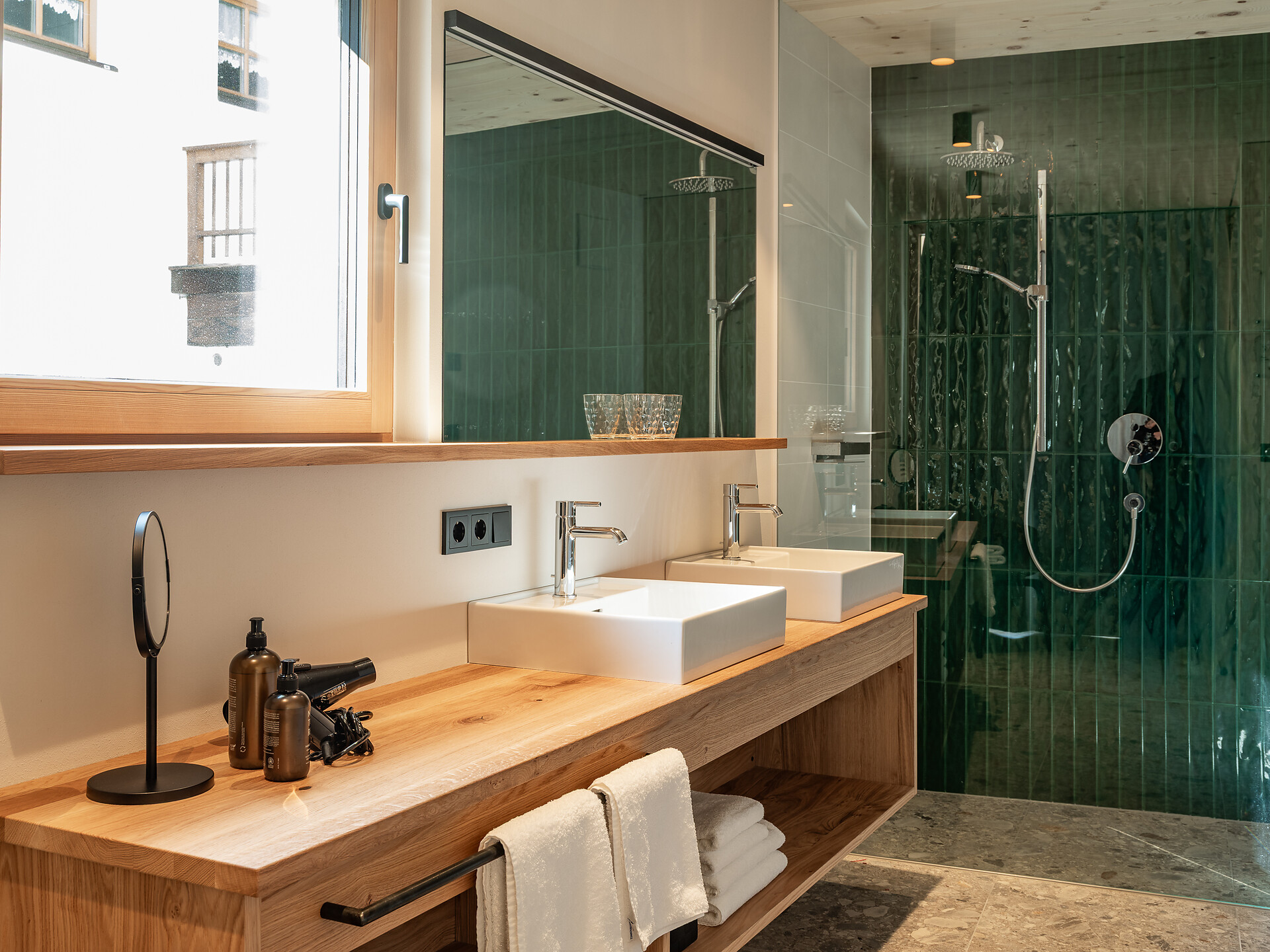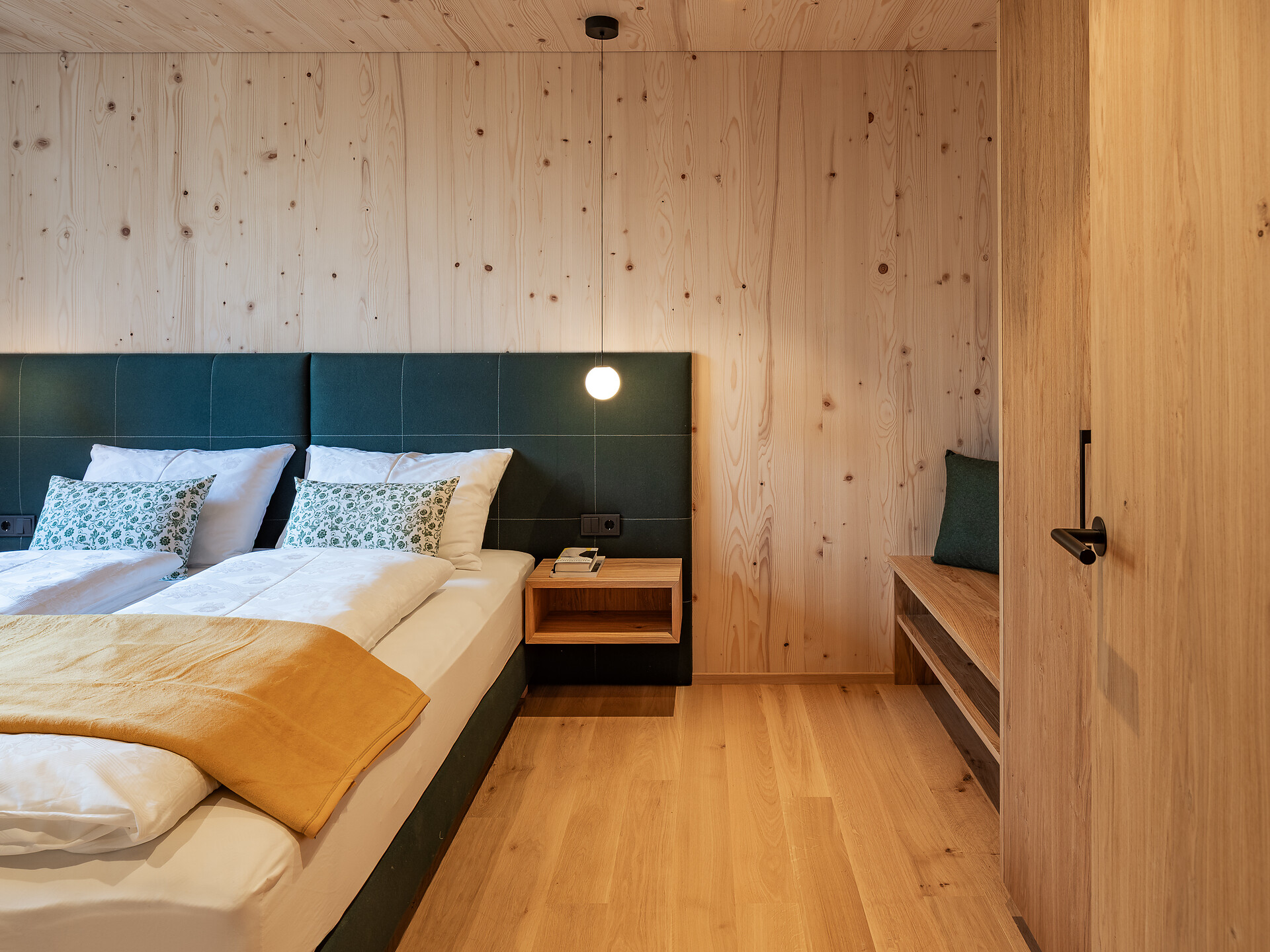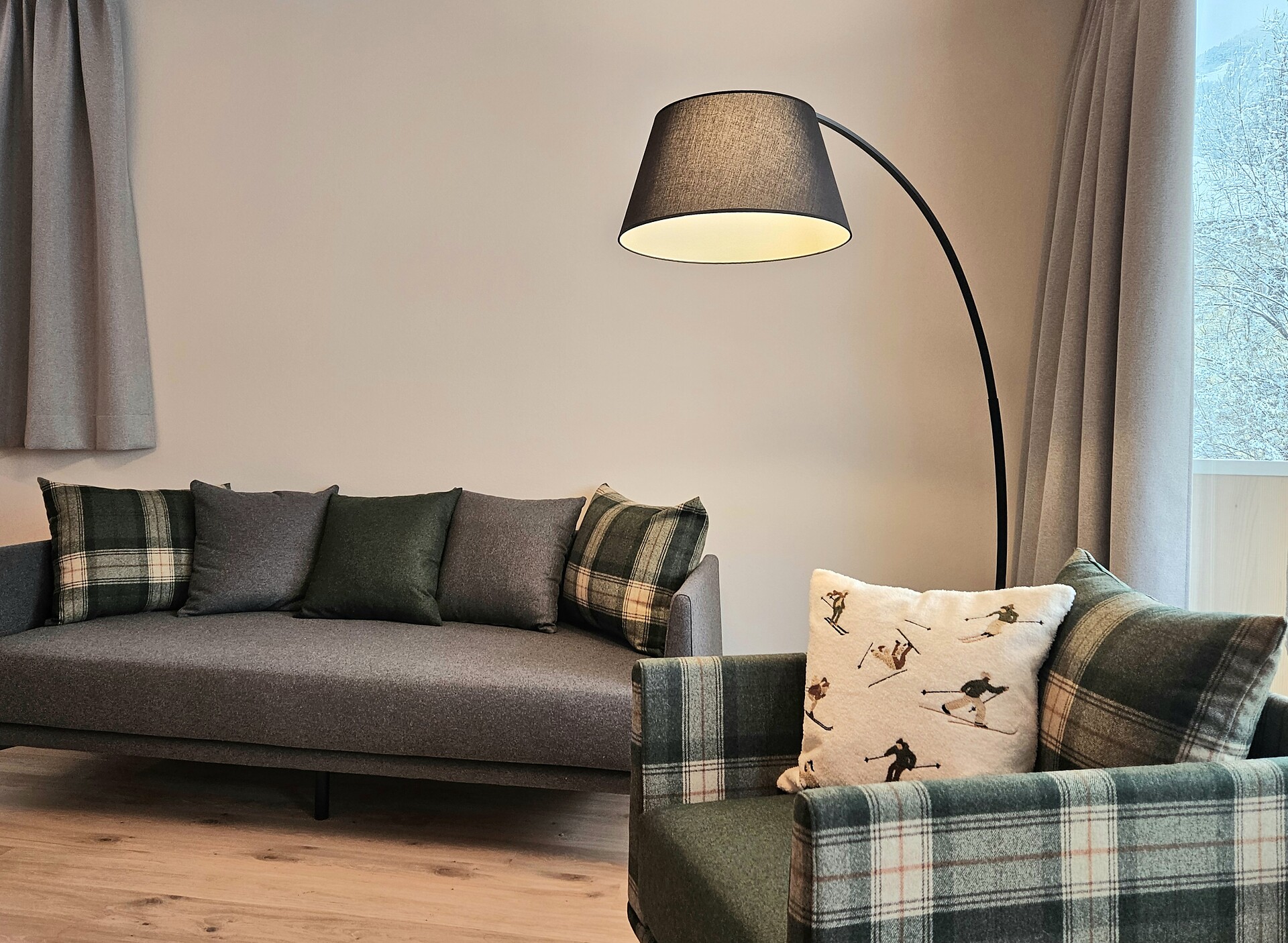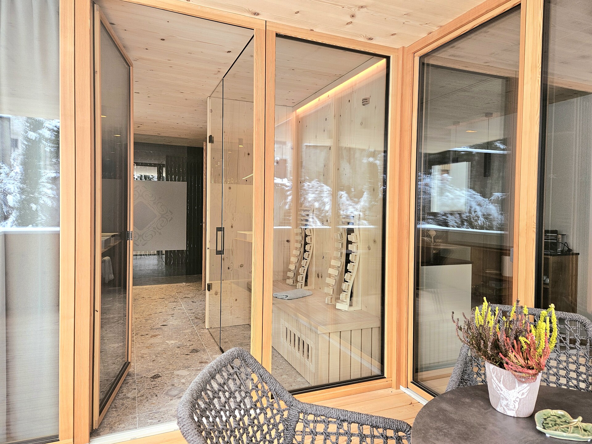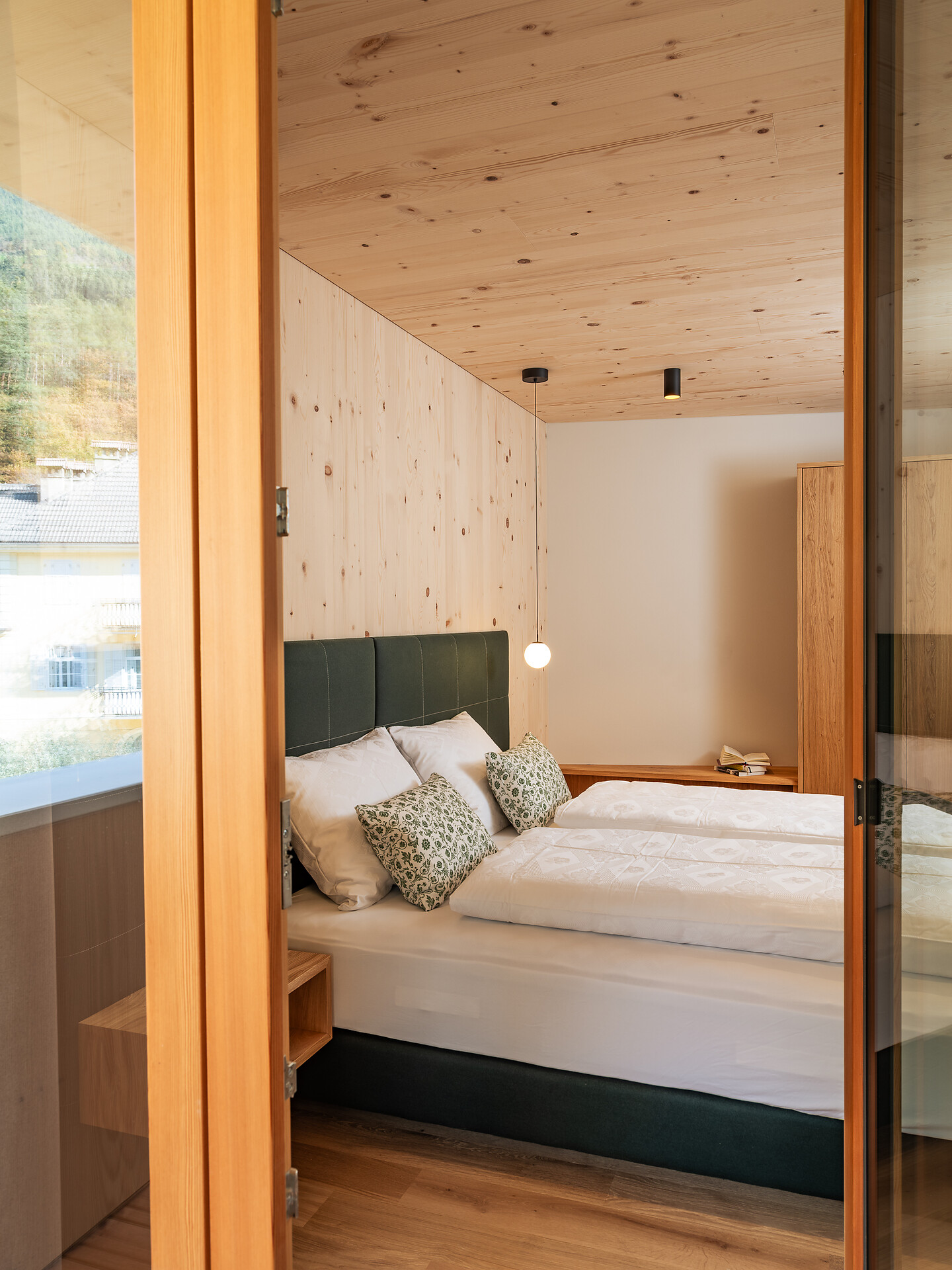 Ausstattung: Doppelbett, Babybett, Bettsofa, Balkon, Terrasse, Separater Wohnraum, Bettwäsche vorhanden, Nichtraucher-Apartment, Wohnküche, Kaffeemaschine, Geschirrspülmaschine, Mikrowelle, Geschirrausstattung, Kochfeld, Dusche/Bad, Separates WC, Haarfön, Badetücher, Ferienwohnung mit Infrarotkabine, TV, WLAN, Endreinigung inbegriffen, Haupthaus, Panoramablick