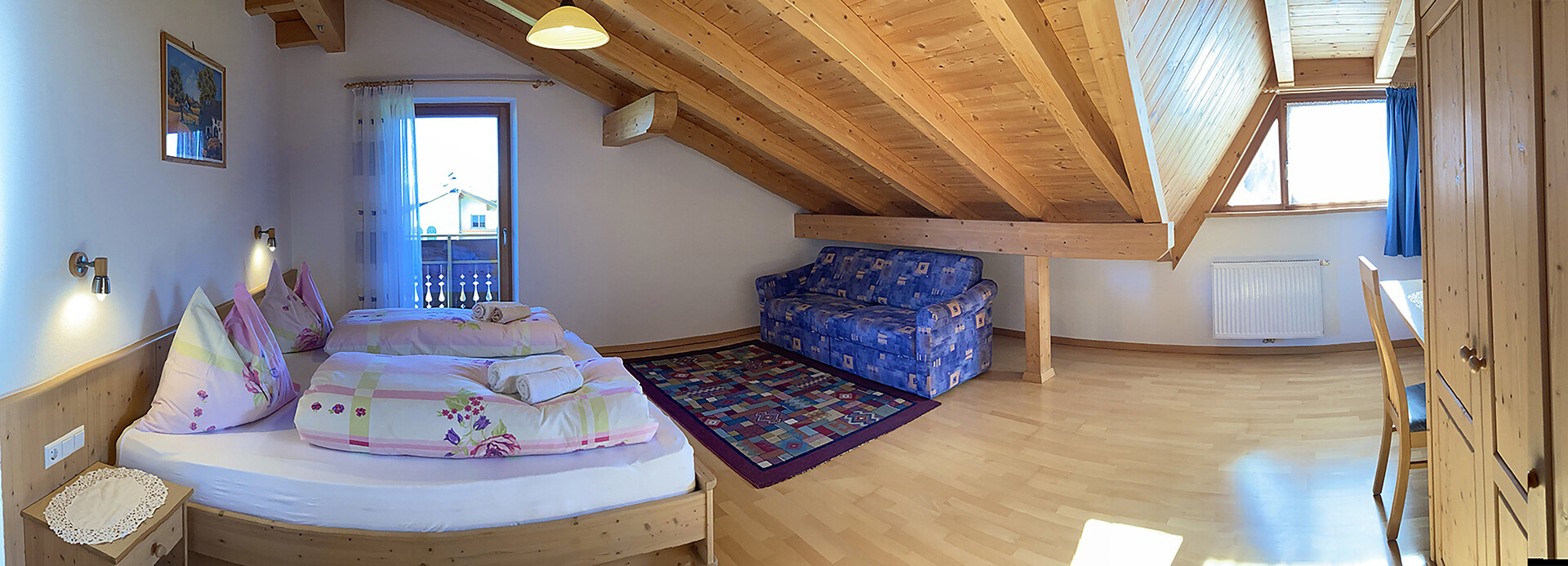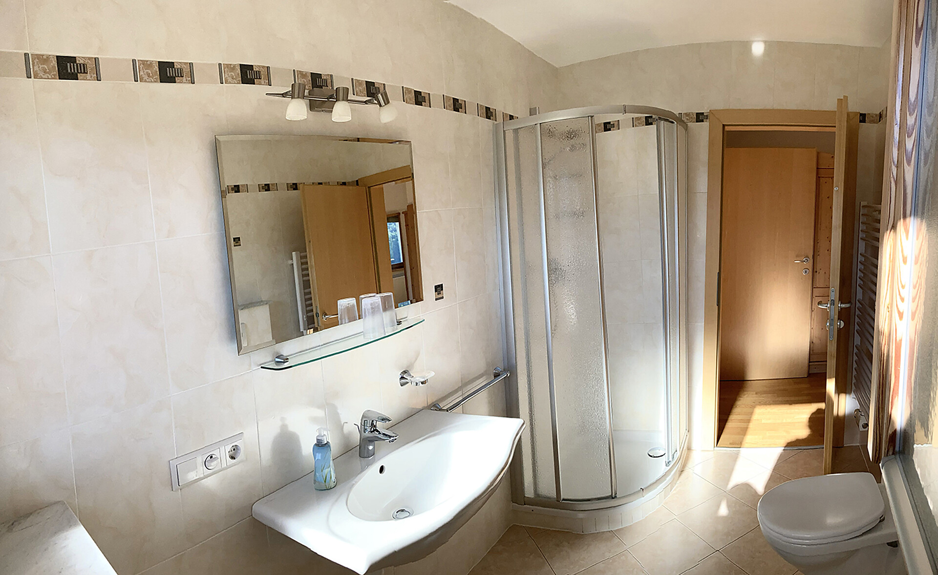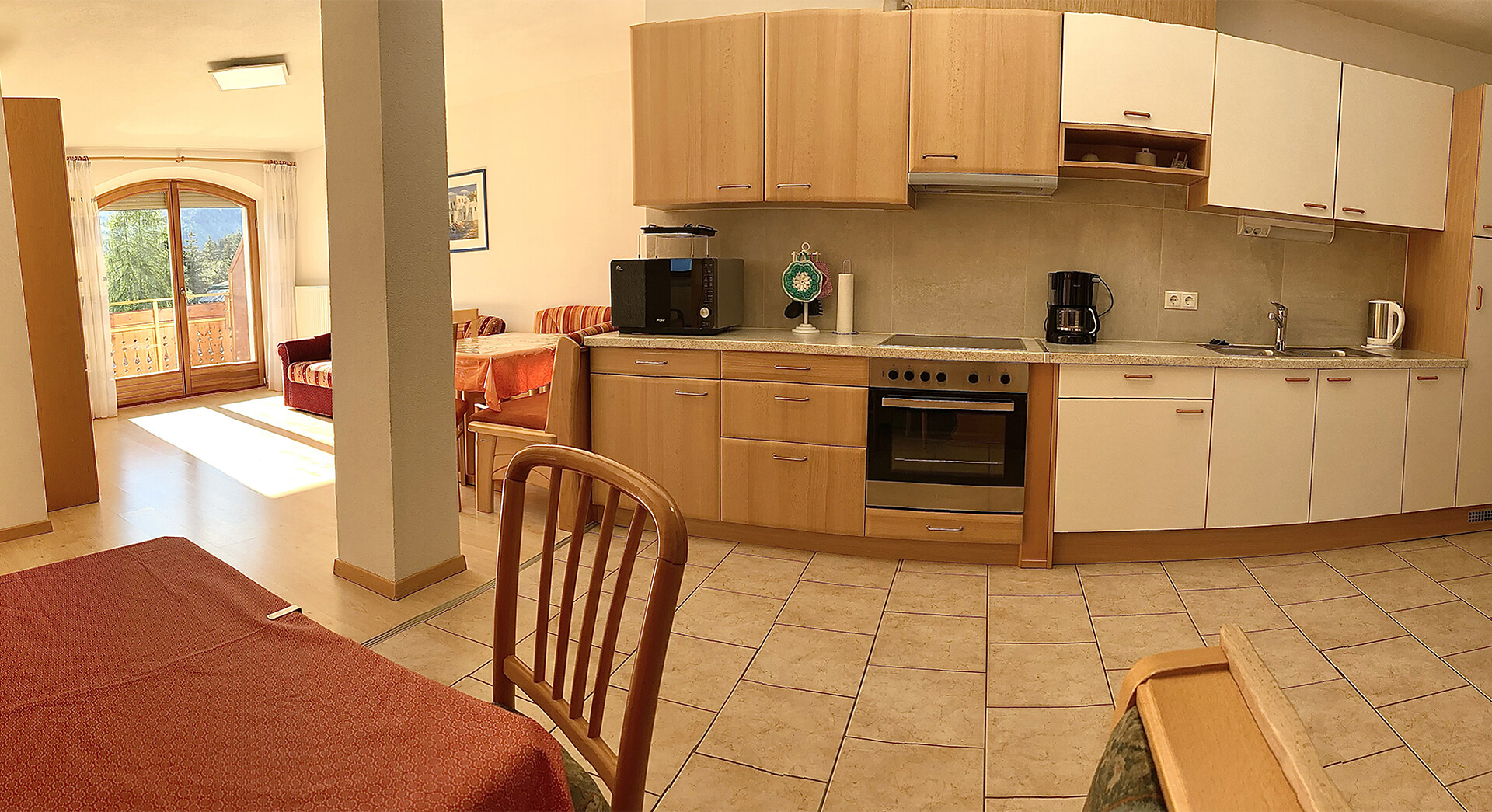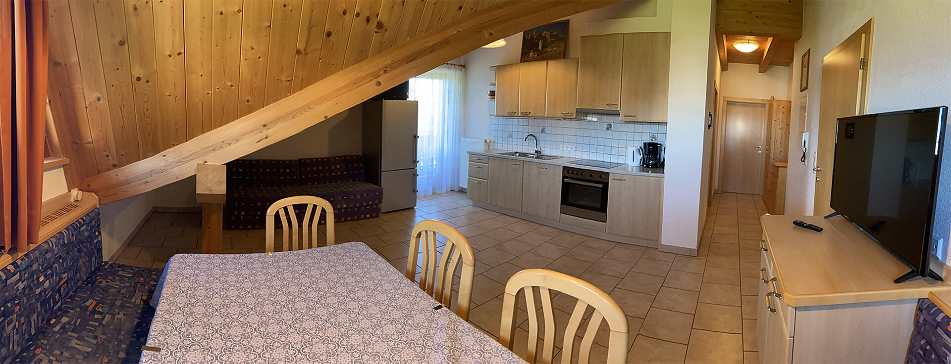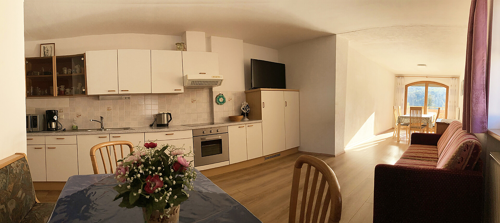 Das Appartement Nr. 3 hat zirka 80m2 und ist ausgestattet mit einer komfortablen Küche, einem Wohnzimmer, 2 Doppelbettzimmer mit je einem Badezimmer und einen Ost- und einen Westbalkon. Die Wohnung ist ausgerichtet auf 4-7 Personen.