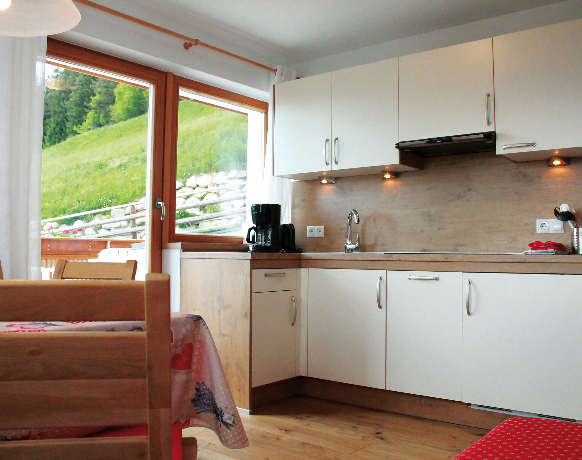 Doppelbett, Zustellbett, Babybett, Bettsofa, Doppelschlafcouch, Balkon, Garten, Bettwäsche vorhanden, Safe, Wohnküche, Kaffeemaschine, Geschirrspülmaschine, Elektroherd, Geschirrausstattung, Dusche/Bad, Badetücher, TV, WLAN, Endreinigung inbegriffen, Haupthaus, Panoramablick, Südseite