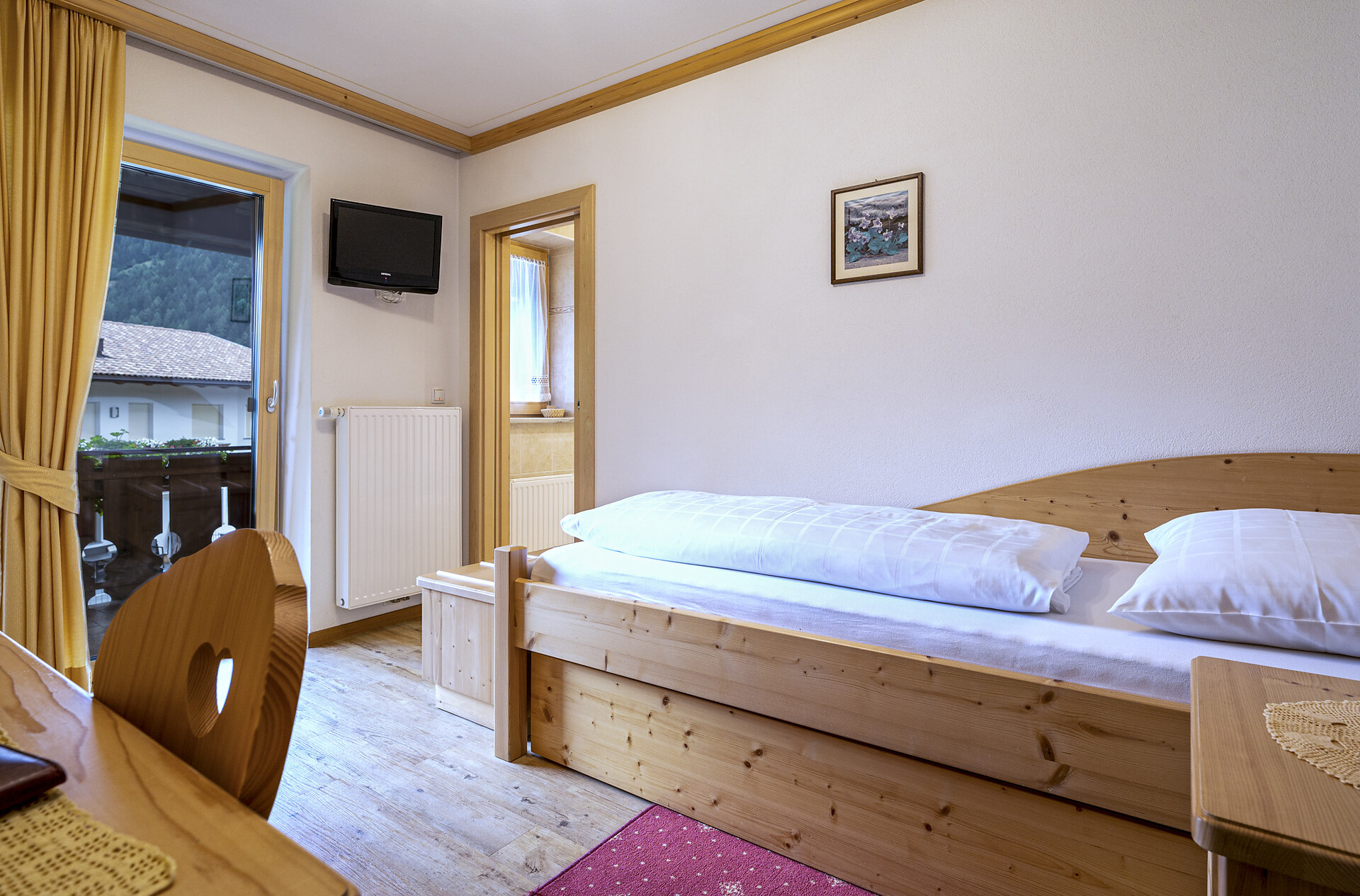 Die 14 Gästezimmer unserer Pension sind mit heimischem Holz, warmen Farben und freundlichen Stoffen eingerichtet und verfügen allesamt über Balkon. Kulinarisch verwöhnt Sie Chef Thomas höchstpersönlich mit traditionellen Südtiroler Gerichten sowie leichten mediterranen Spezialitäten der italienischen Küche. An der Rezeption und im Service sind Sie bei Elisabeth in den besten Händen. Familien und Kinder schätzen das Spielzimmer, den Spielplatz im Freien und die verkehrsruhige Lage des Hauses, nur 5 Gehminuten vom Zentrum.