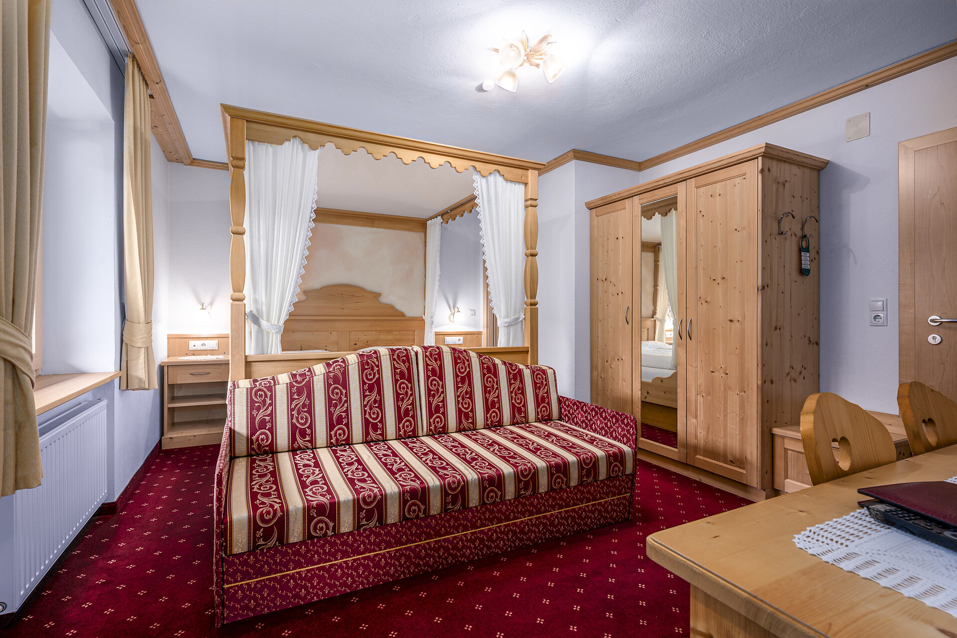 Doppelzimmer, Doppelbett, Babybett, Bettsofa, Balkon, Safe, Dusche / Bad, Haarfön, TV, Satellit/Kabel, WLAN, Internetanschluss, Haupthaus, Panoramablick, Südseite