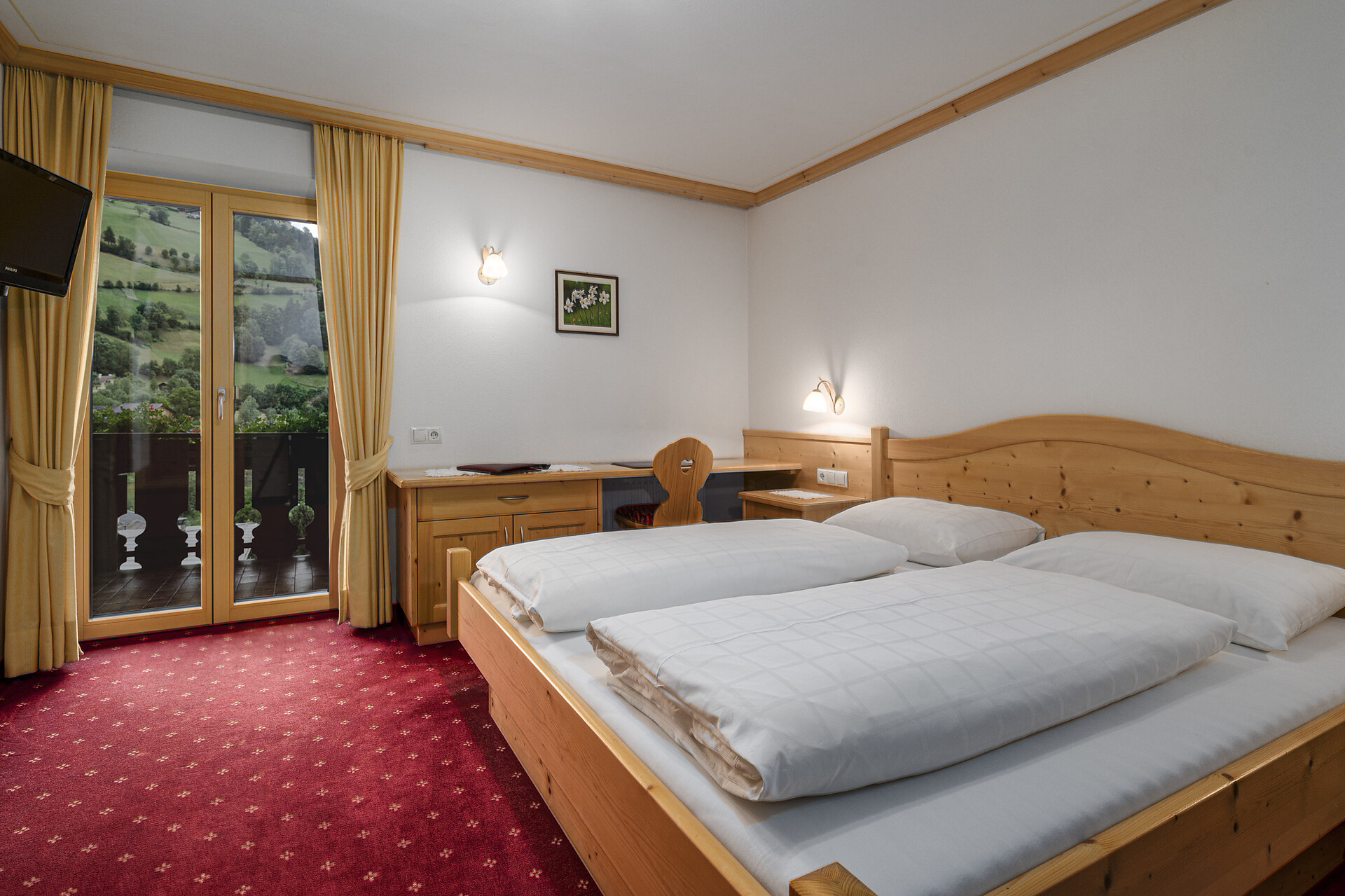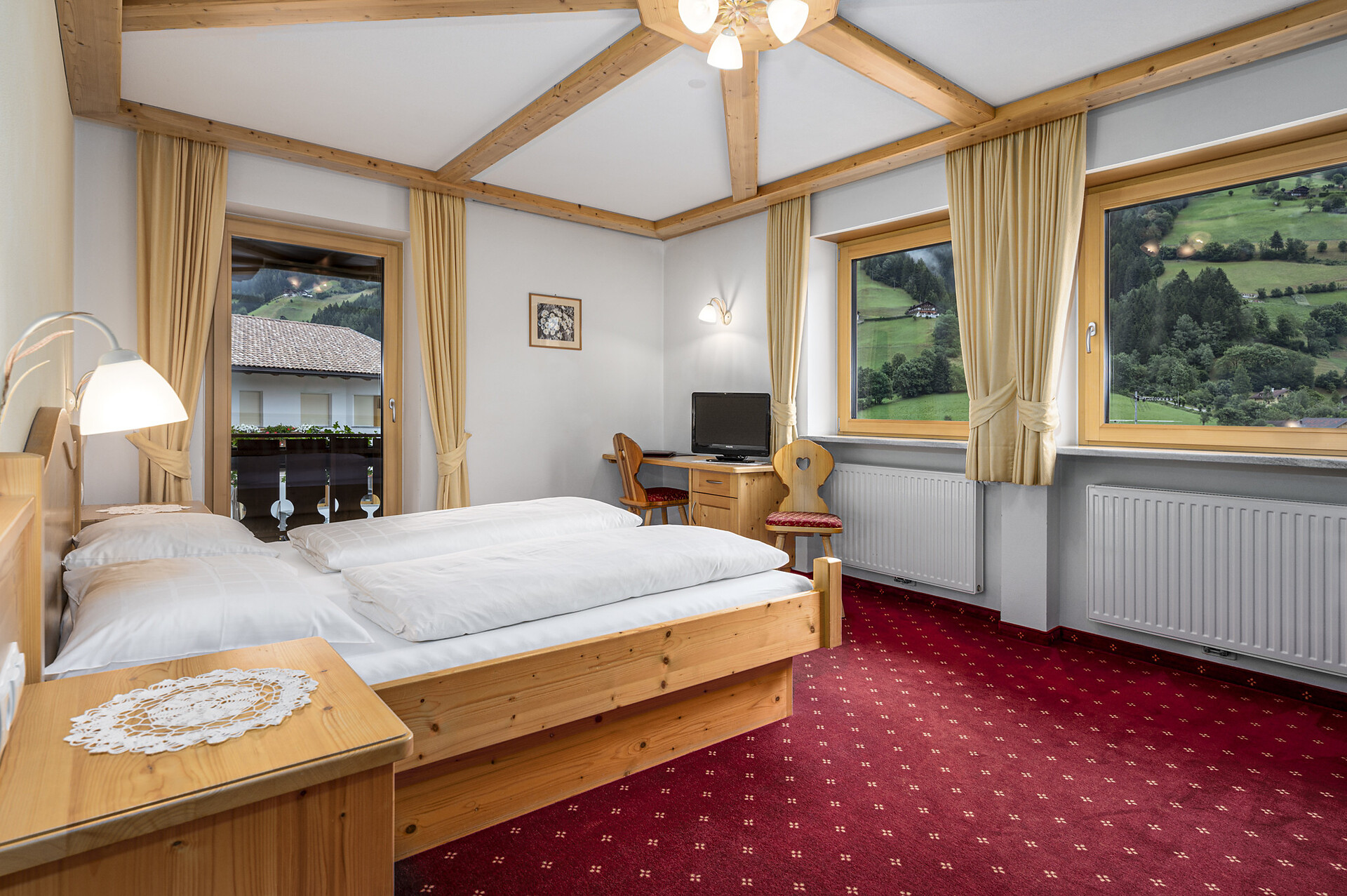 Doppelzimmer, Doppelbett, Balkon, Safe, Dusche / Bad, Haarfön, TV, Satellit/Kabel, WLAN, Internetanschluss, Haupthaus, Panoramablick, Südseite