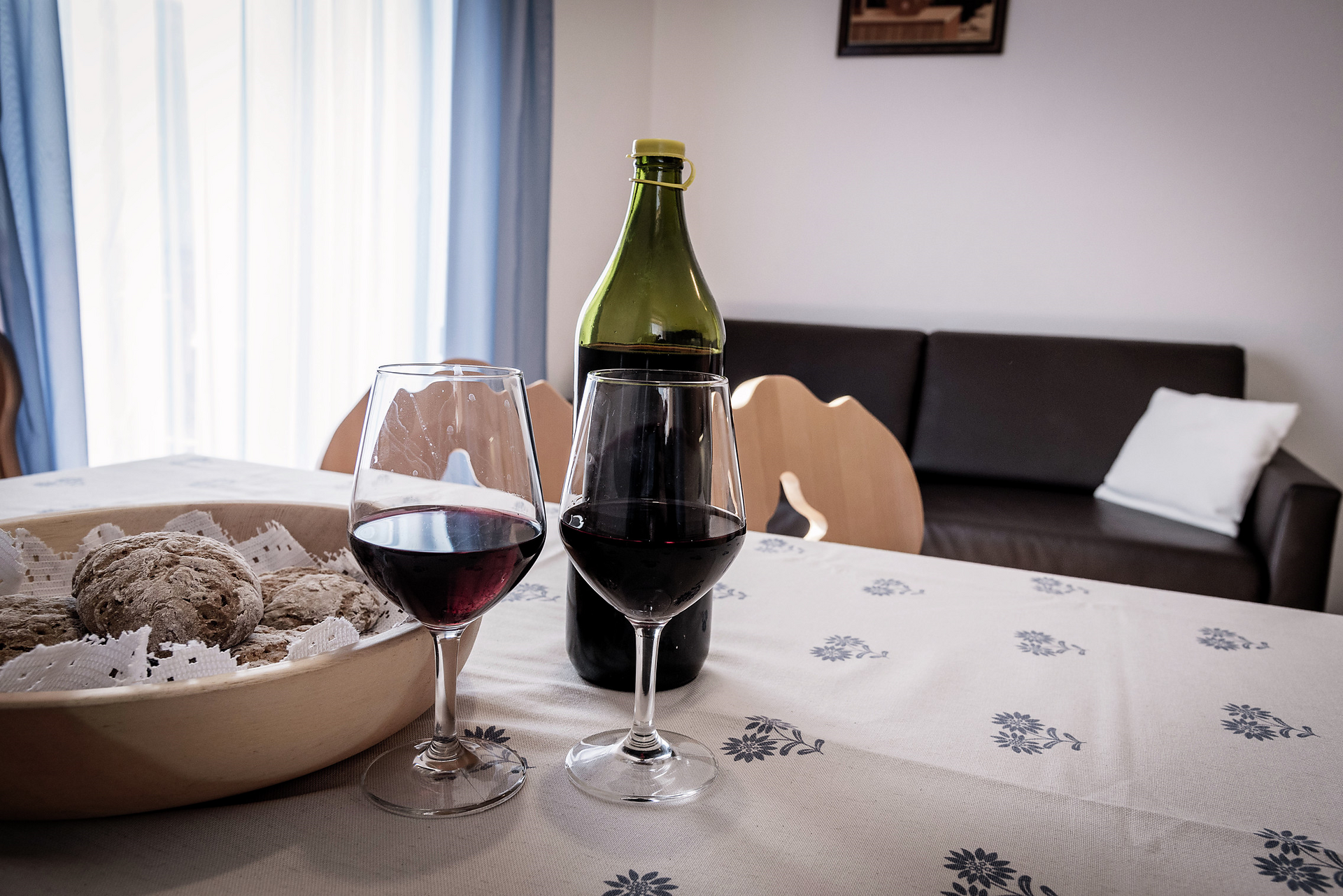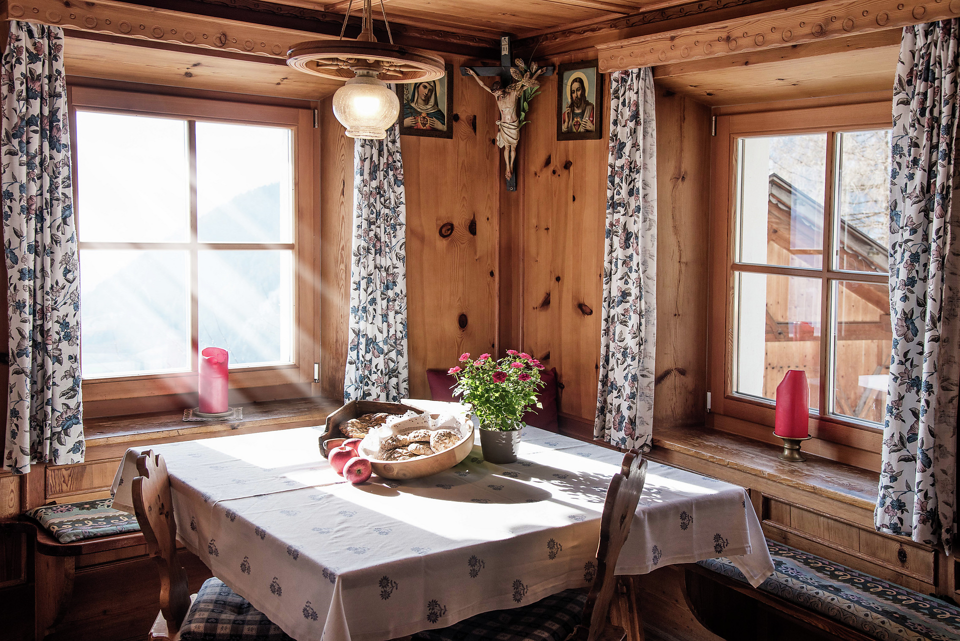 Hütte / Bauernhaus || ca. 180 m² ||ab 6 bis 11 Personen Unser Bauernhaus ist eine urige gemütliche Hütte, ruhig gelegen und im traditionellen Südtiroler Stil eingerichtet. Das Haus kann als große Ferienwohnung ab 8 bis 11 Personen gemietet werden – also genau das Richtige für einen kunterbunten Urlaub oder Geburtstagsfeiern mit der Großfamilie, Freunden oder Gleitschirmfreunden! Es bietet Dir die perfekte Ausgangsmöglichkeit für Passfahrten und schönen Ausflügen mit u.a. Motorrädern. Ausstattung: Große, geräumige und getäfelte Bauernstube mit Bauernofen, gemütlicher Liegeplatz auf dem Ofen und Ofenbank (wie früher), große neugestaltete Küche mit Spülmaschine, Holzherd für kuschelige Atmosphäre, Elektroherd, Kühl- und Gefrierschrank, Kaffeemaschine, Toaster, Wasserkocher, Eierkocher, Backofen, renovierte Bäder, große Terrasse mit Grill, vier Doppel- & ein Dreibettzimmer mit Bädern, Balkonen und Terrasse. Panoramasauna – Entspannung mit Aussicht.Parkplätze genügend vorhanden.