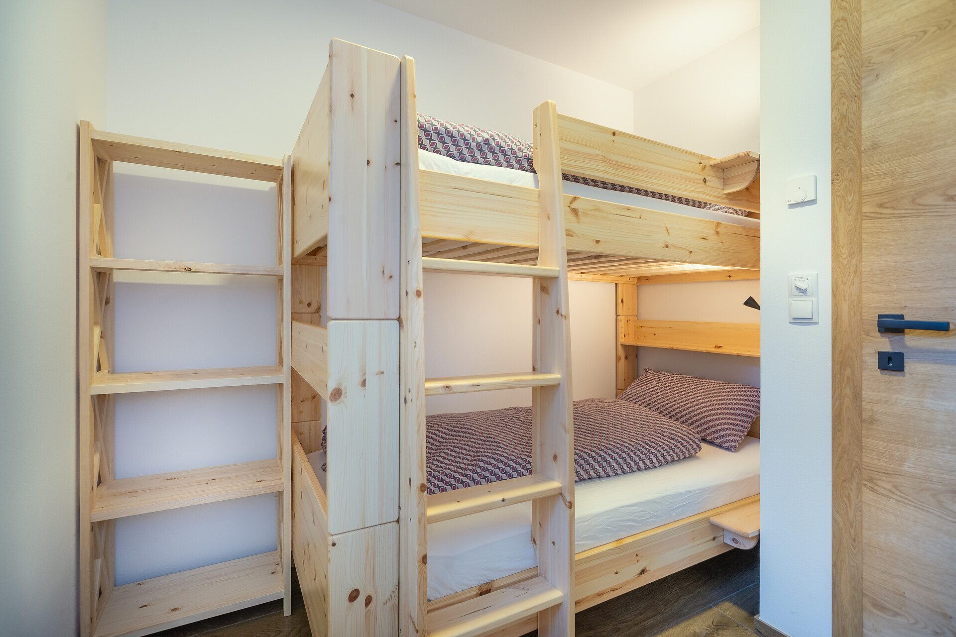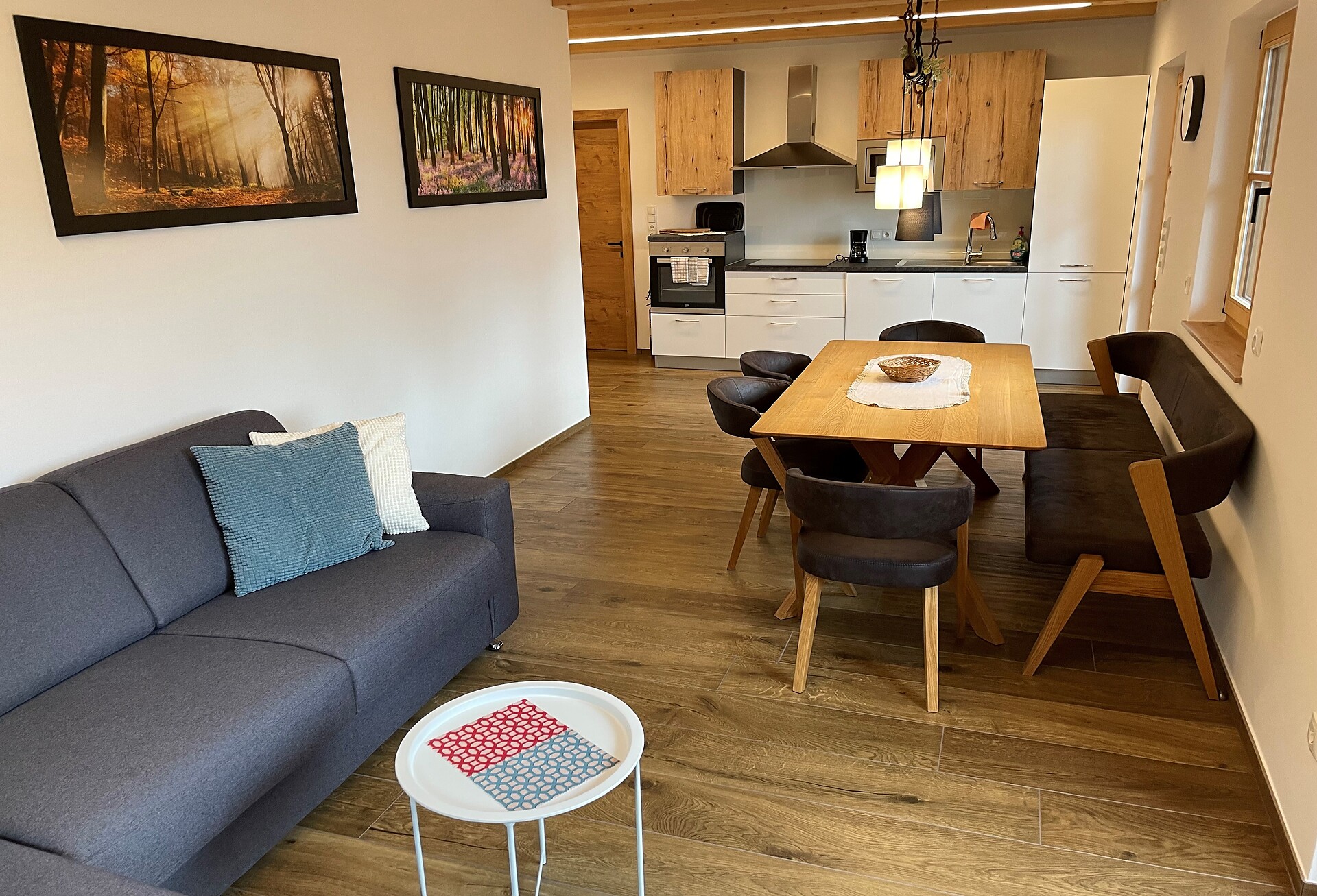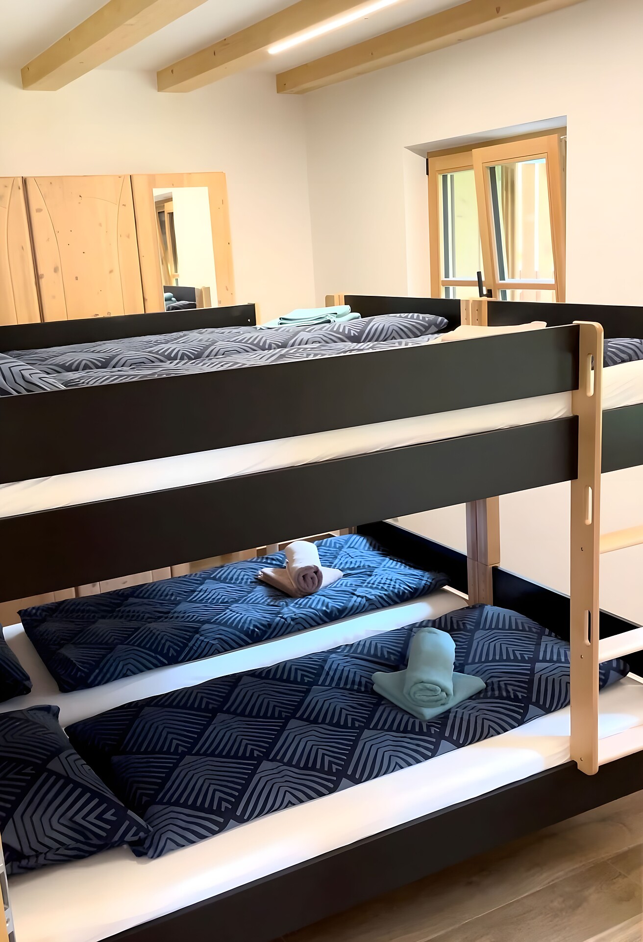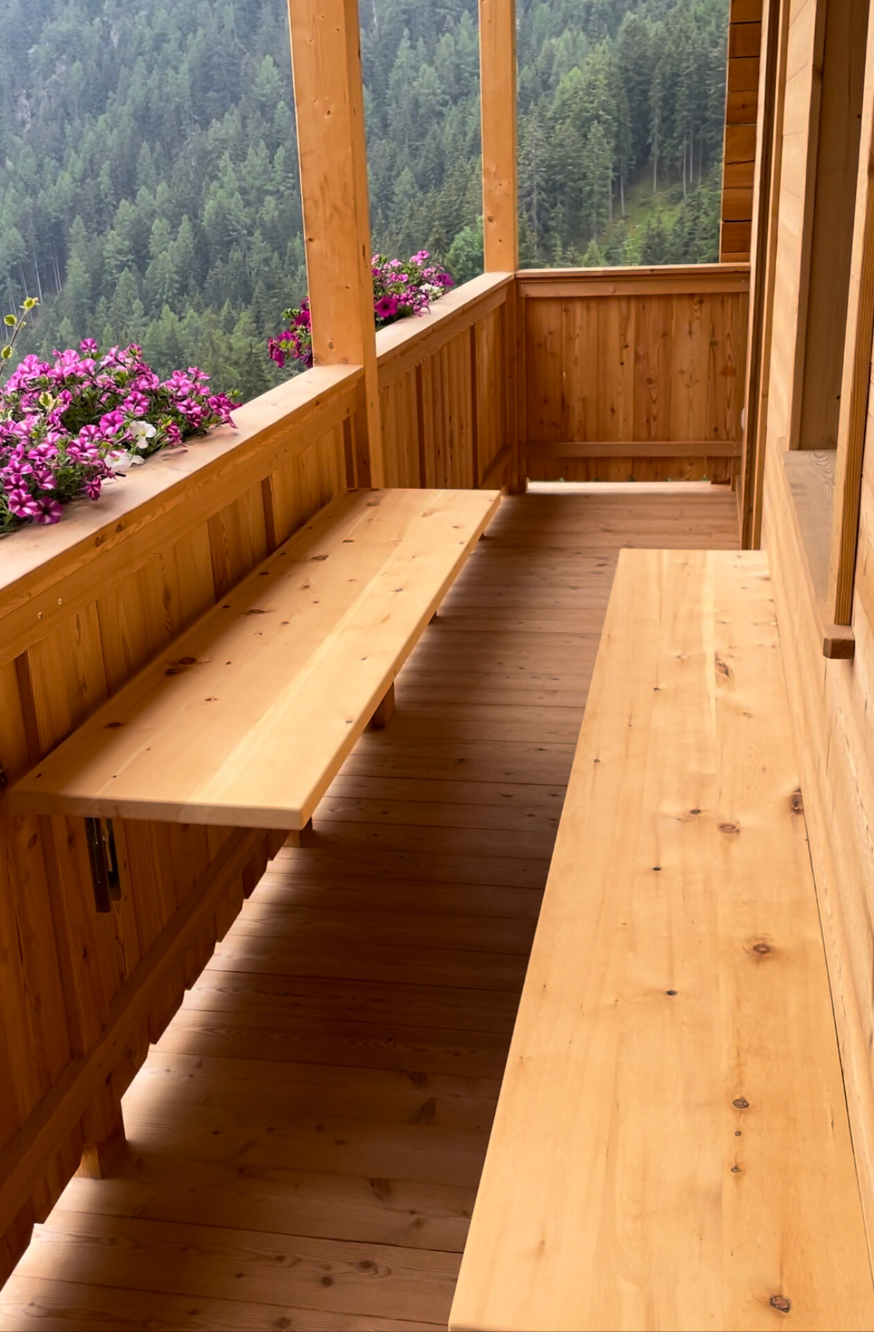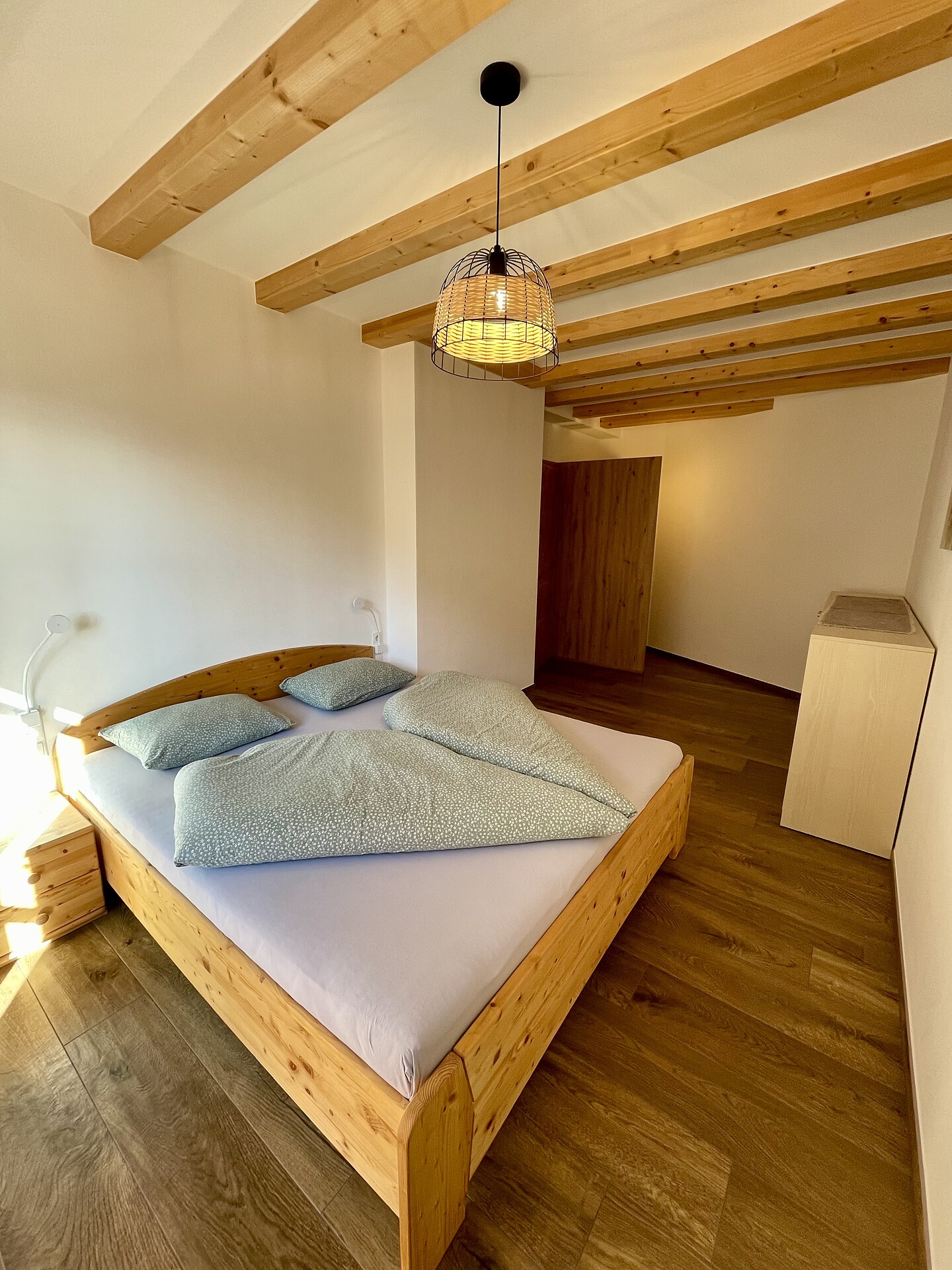 Die Ferienwohnung PANORAMA (73 m², Obergeschoss) für 4–6 Personen bietet modernen Komfort und Zugang zur Außensauna mit Panoramablick. Der große, sonnige Balkon lädt zum Entspannen mit freier Sicht auf die Bergwelt ein. Die helle Wohnküche ist ausgestattet mit Geschirrspüler, Induktionsherd, Backrohr, Espressomaschine, Kühlschrank mit Gefrierfach, Mikrowelle und allen notwendigen Utensilien. Ein 43″ Smart TV mit High-Speed-Internet, kompatibel mit allen Streaming-Diensten, kostenloses WLAN sowie verschiedene Bücher sind vorhanden. Das Bad verfügt über Fenster, große Dusche, WC, Bidet, Badheizkörper und viel Ablage. Alle Räume besitzen Fußbodenheizung und Wohnraumlüftung. Schlafmöglichkeiten: Doppelzimmer, Zimmer mit zwei Stockbetten sowie Schlafsofa mit komfortabler Matratze. Fenster mit elektrischen Rollläden und Insektenschutz. Waschmaschine vorhanden. Parkplätze am Haus, Garage auf Anfrage; Skischuhtrockner für alle Gäste. Endreinigung inkl. (ausgenommen Küchenzeile), Kaution 150 €.