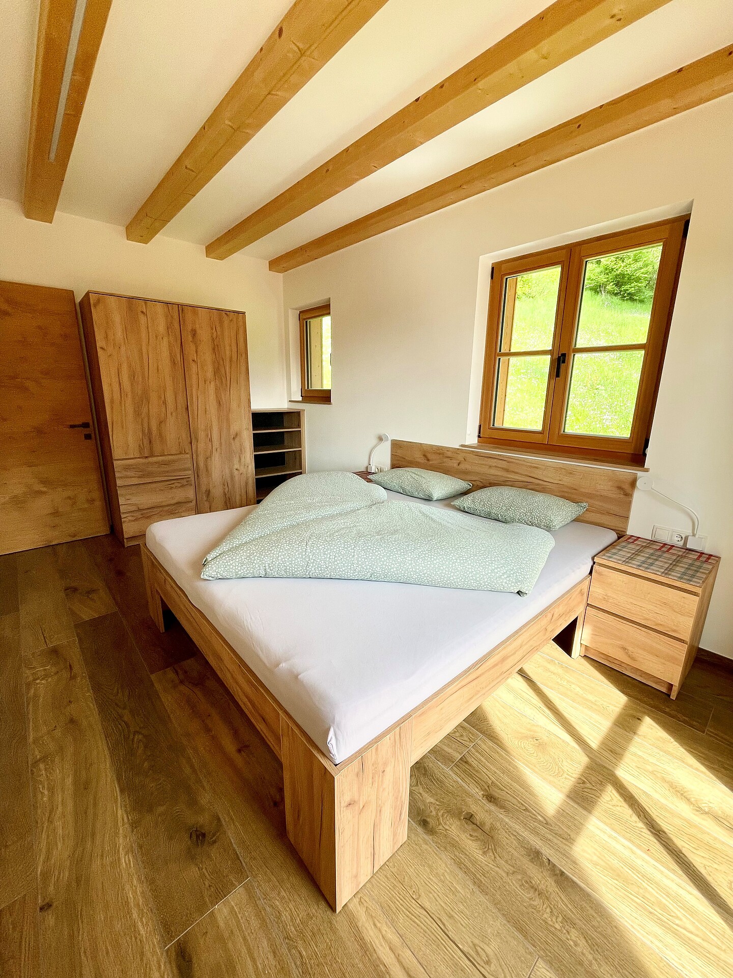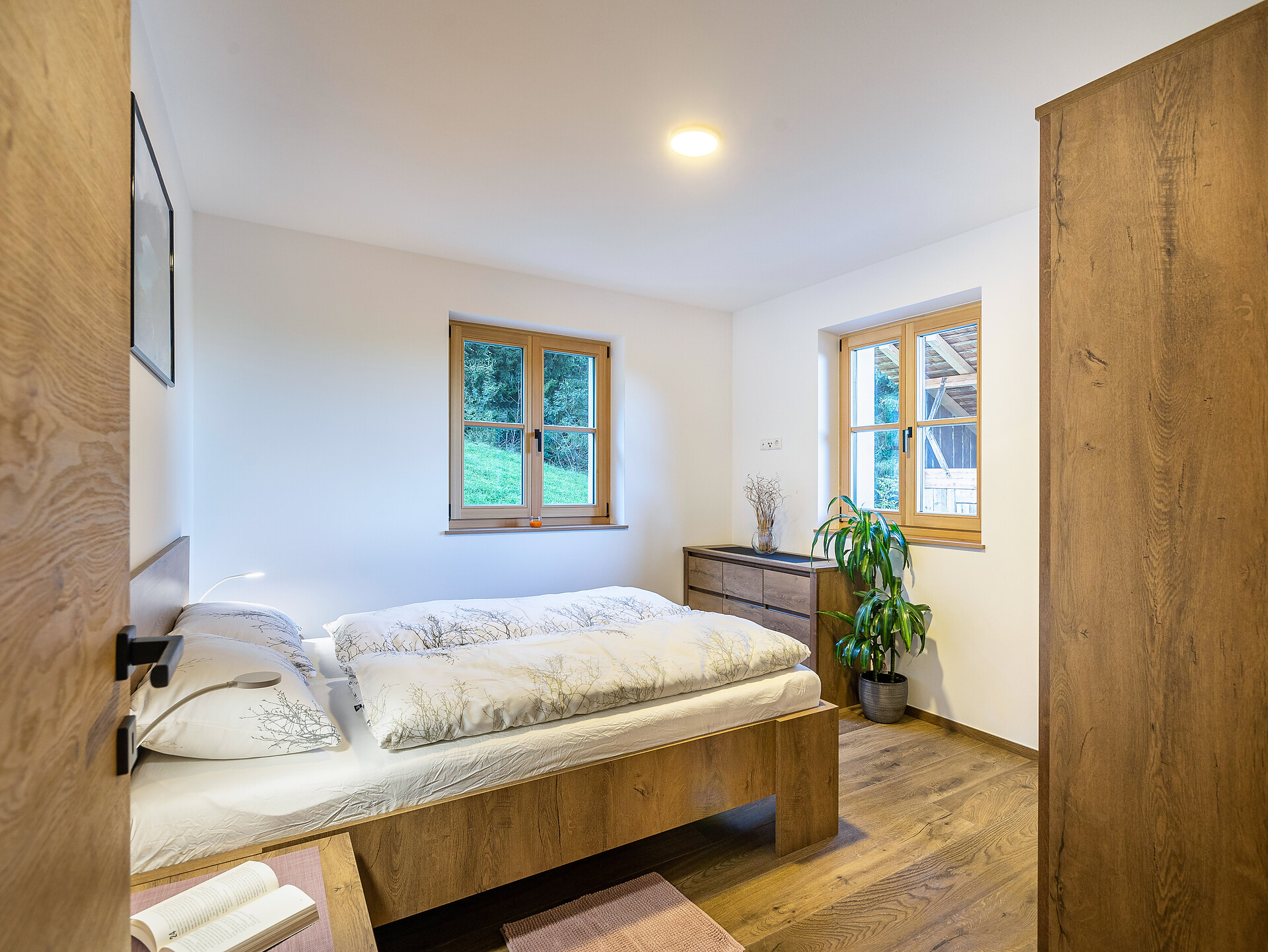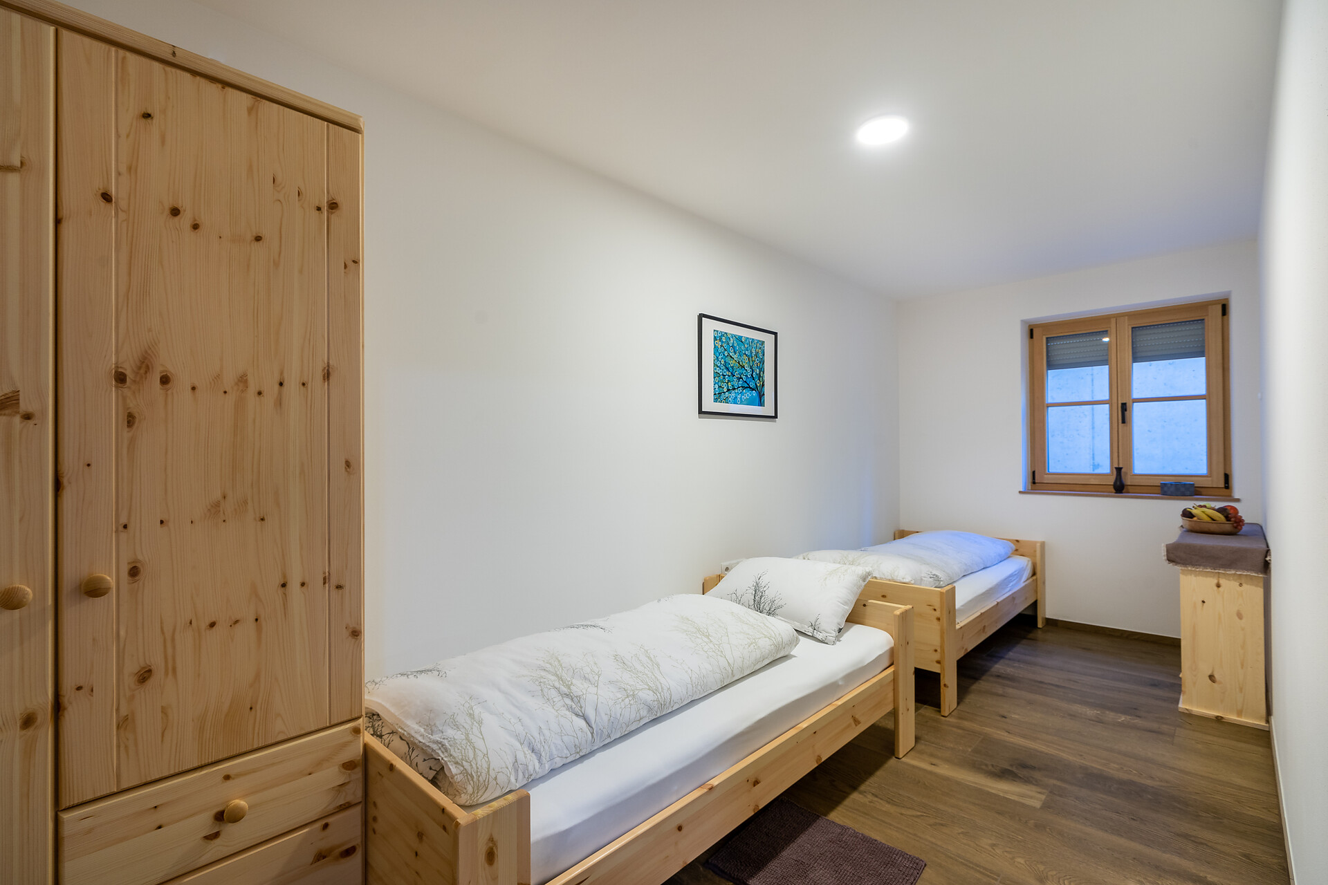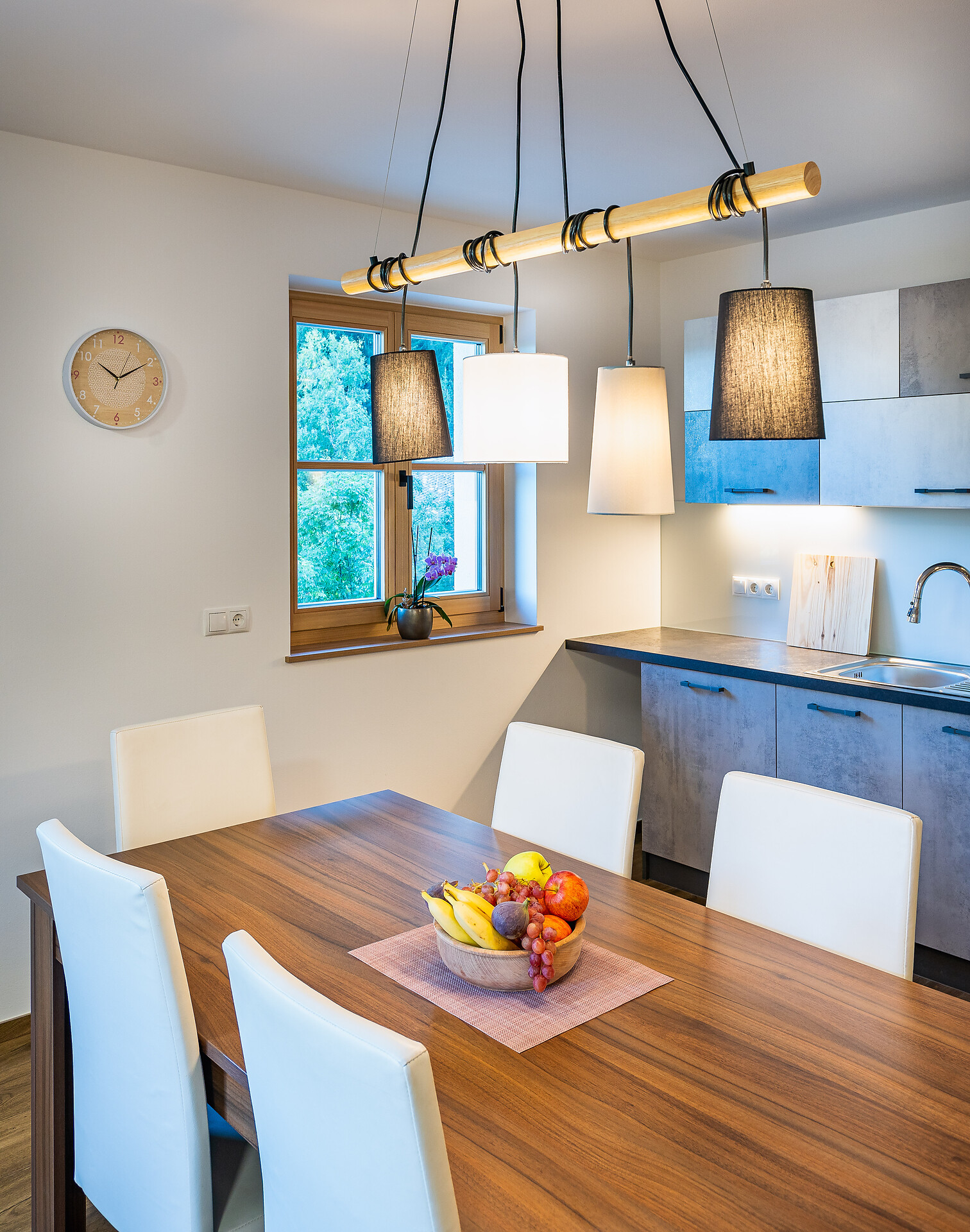 Die Ferienwohnung PANORAMA (73 m², Obergeschoss) für 4–6 Personen bietet modernen Komfort und Zugang zur Außensauna mit Panoramablick. Der große, sonnige Balkon lädt zum Entspannen mit freier Sicht auf die Bergwelt ein. Die helle Wohnküche ist ausgestattet mit Geschirrspüler, Induktionsherd, Backrohr, Espressomaschine, Kühlschrank mit Gefrierfach, Mikrowelle und allen notwendigen Utensilien. Ein 43″ Smart TV mit High-Speed-Internet, kompatibel mit allen Streaming-Diensten, kostenloses WLAN sowie verschiedene Bücher sind vorhanden. Das Bad verfügt über Fenster, große Dusche, WC, Bidet, Badheizkörper und viel Ablage. Alle Räume besitzen Fußbodenheizung und Wohnraumlüftung. Schlafmöglichkeiten: Doppelzimmer, Zimmer mit zwei Stockbetten sowie Schlafsofa mit komfortabler Matratze. Fenster mit elektrischen Rollläden und Insektenschutz. Waschmaschine vorhanden. Parkplätze am Haus, Garage auf Anfrage; Skischuhtrockner für alle Gäste. Endreinigung inkl. (ausgenommen Küchenzeile), Kaution 150 €.