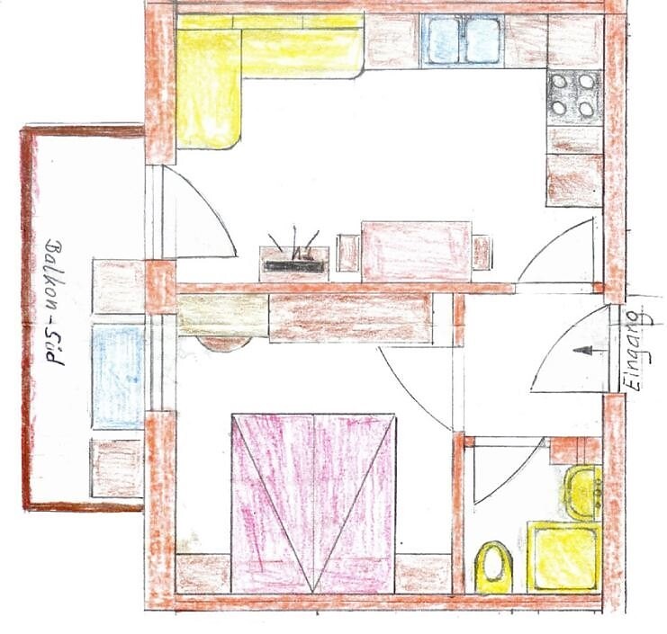 - Küche mit: Kühlschrank mit Gefrierfach, Backofen, -
