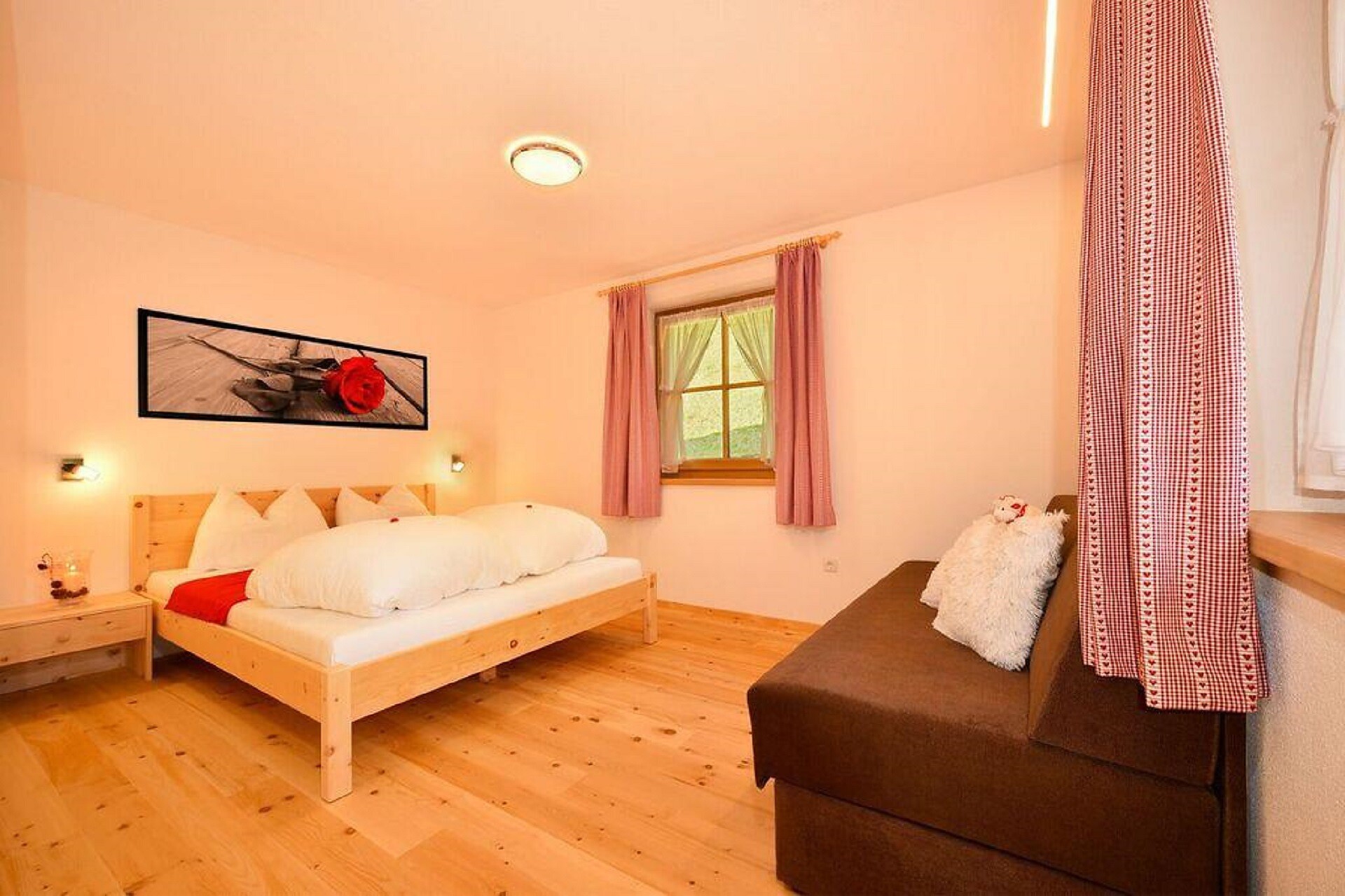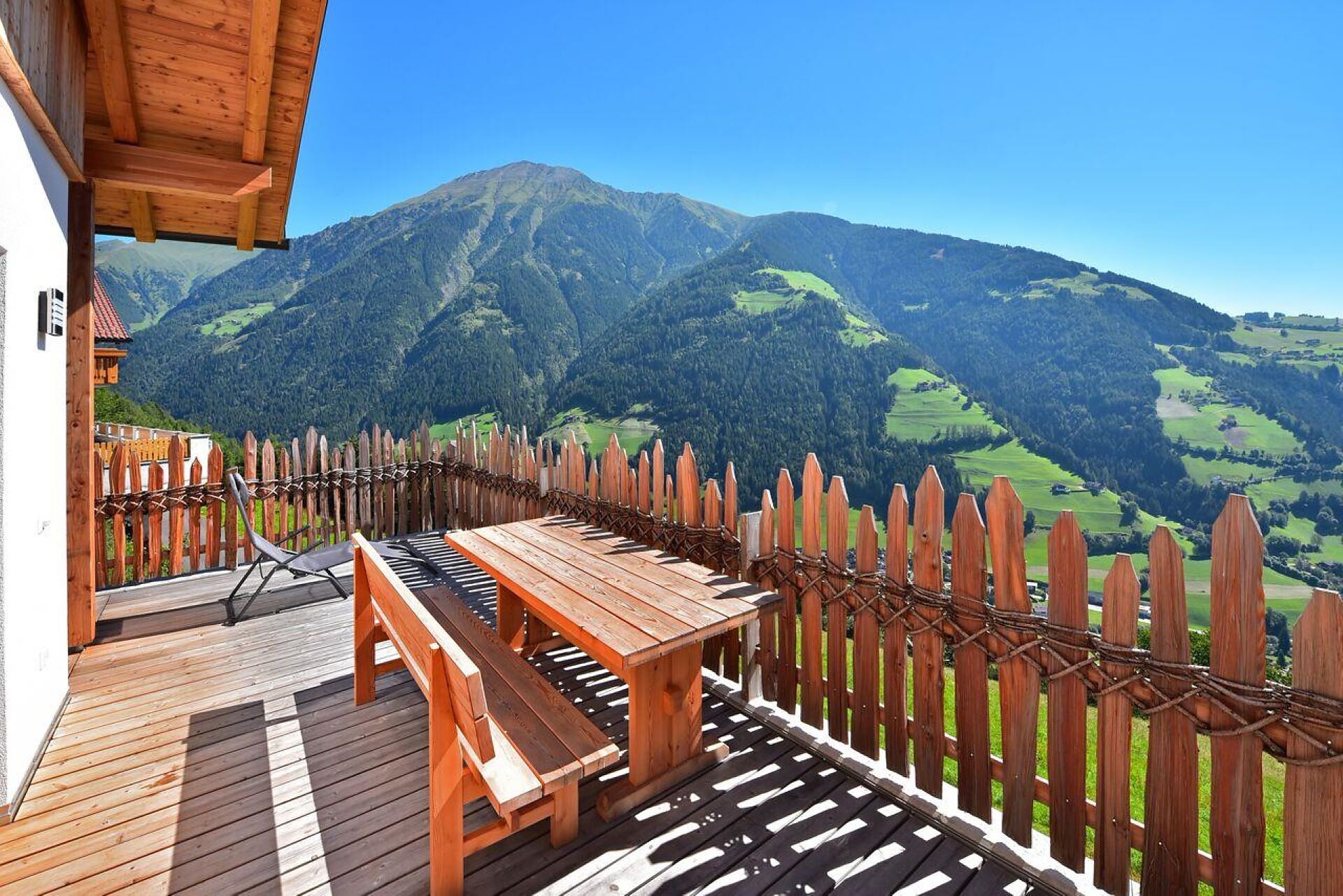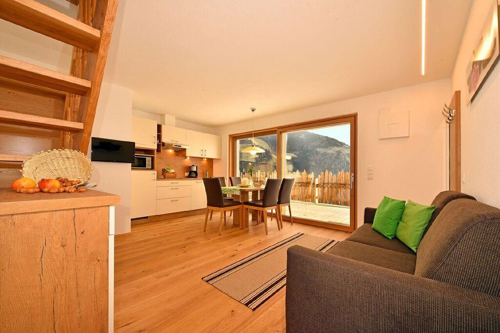 Einzelbett, Doppelbett, Bettsofa, Doppelschlafcouch, Terrasse, Garten, Separater Wohnraum, Bettwäsche vorhanden, Wohnküche, Kaffeemaschine, Geschirrspülmaschine, Elektroherd, Mikrowelle, Geschirrausstattung, Dusche/Bad, Haarfön, Badetücher, Fernseher auf Anfrage, WLAN, Endreinigung inbegriffen, Dependance, Panoramablick, Südseite
