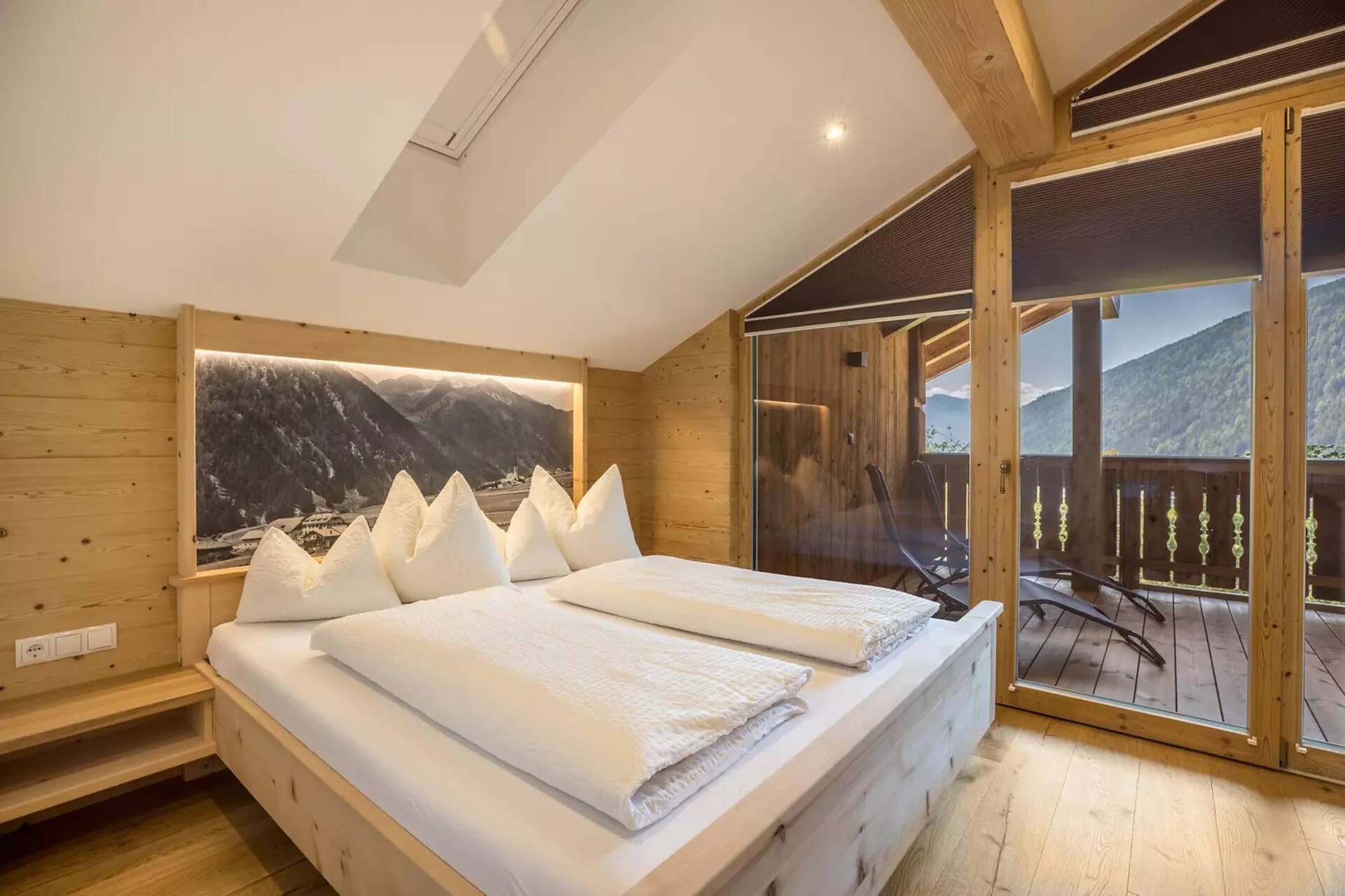 Babybett, Doppelschlafcouch, Balkon, Terrasse, Safe, 2 oder mehr Schlafzimmer, Separate Küche, Kaffeemaschine, Geschirrspülmaschine, Elektroherd, Mikrowelle, Geschirrausstattung, Dusche/Bad, Bidet, Haarfön, Bademantel, Badetücher, Badewanne, Ferienwohnung mit Sauna, Waschmaschine im Apartment, TV, Satellit/Kabel, WLAN, Endreinigung inbegriffen, Haupthaus, Panoramablick, Südseite