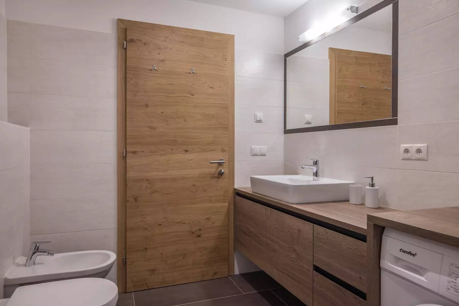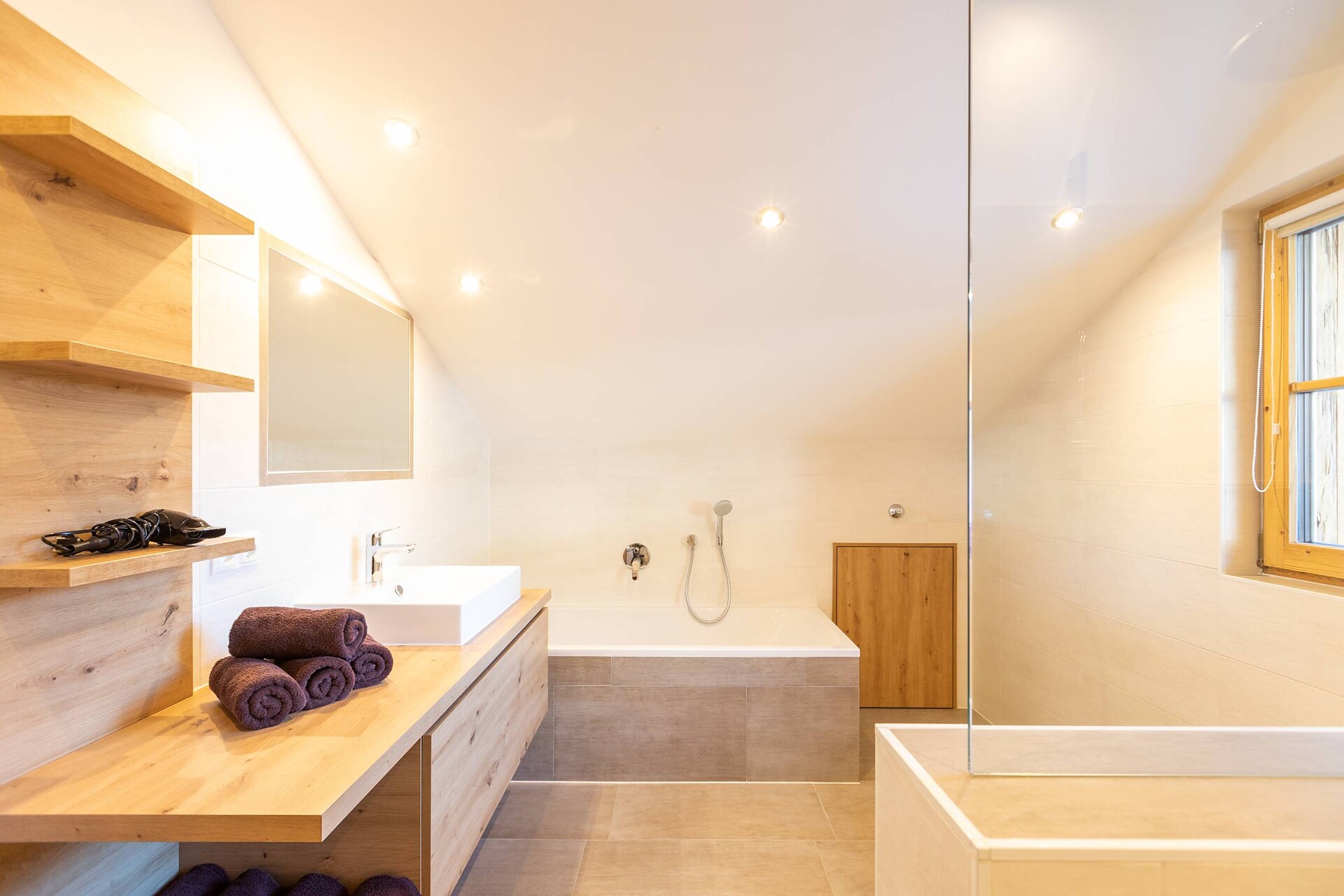 • großzügiges Bad mit Dusche, WC, Badewanne und Bidet, Föhn