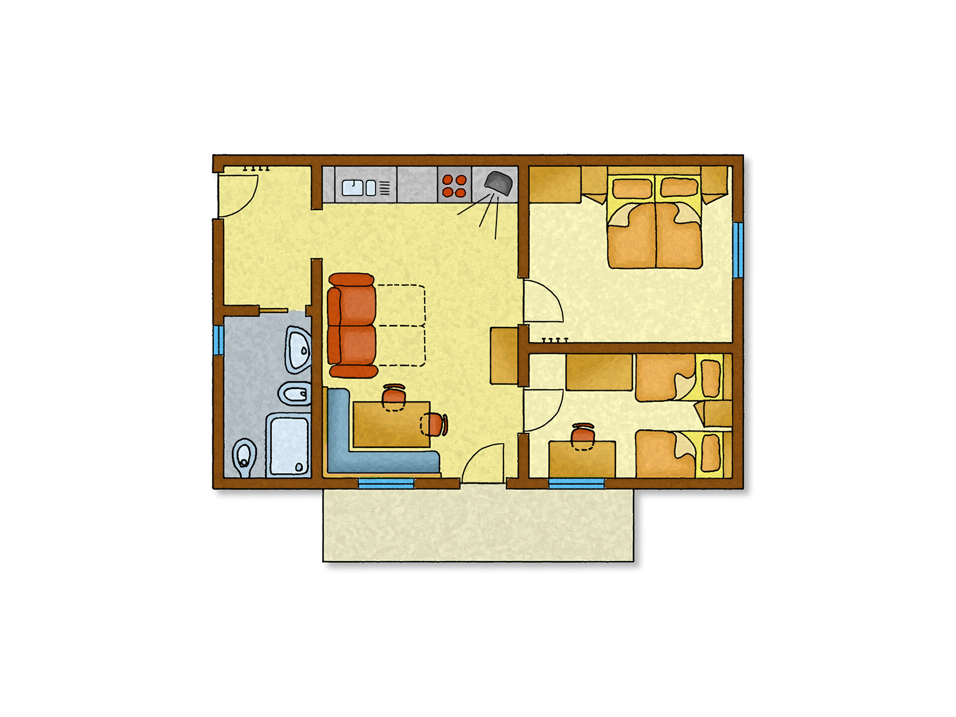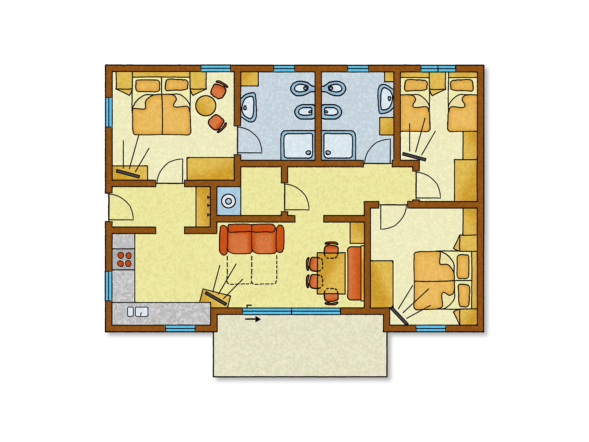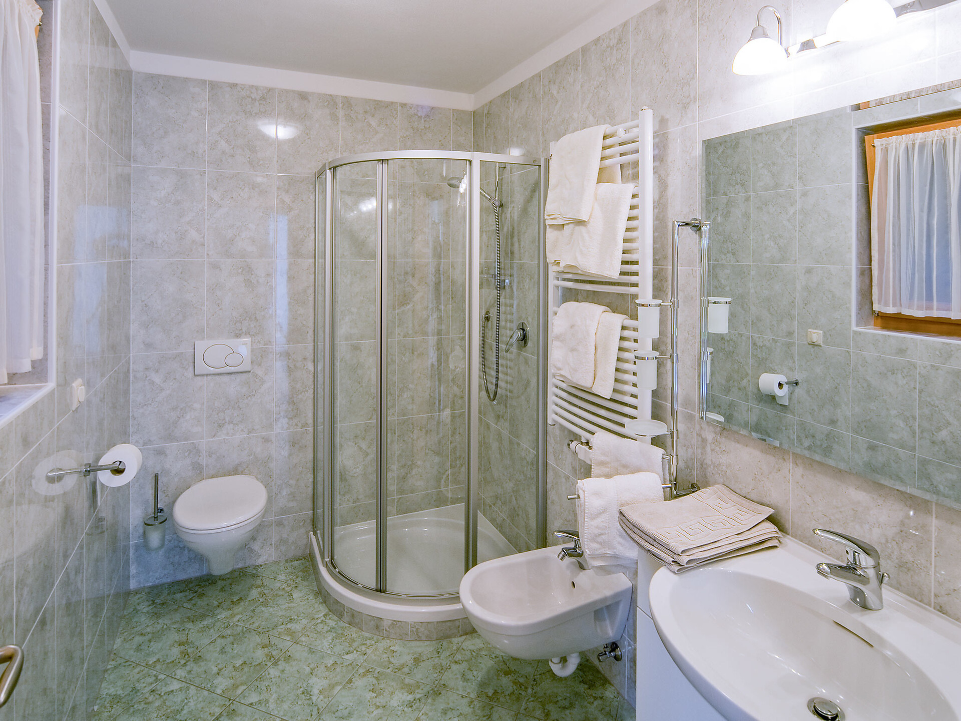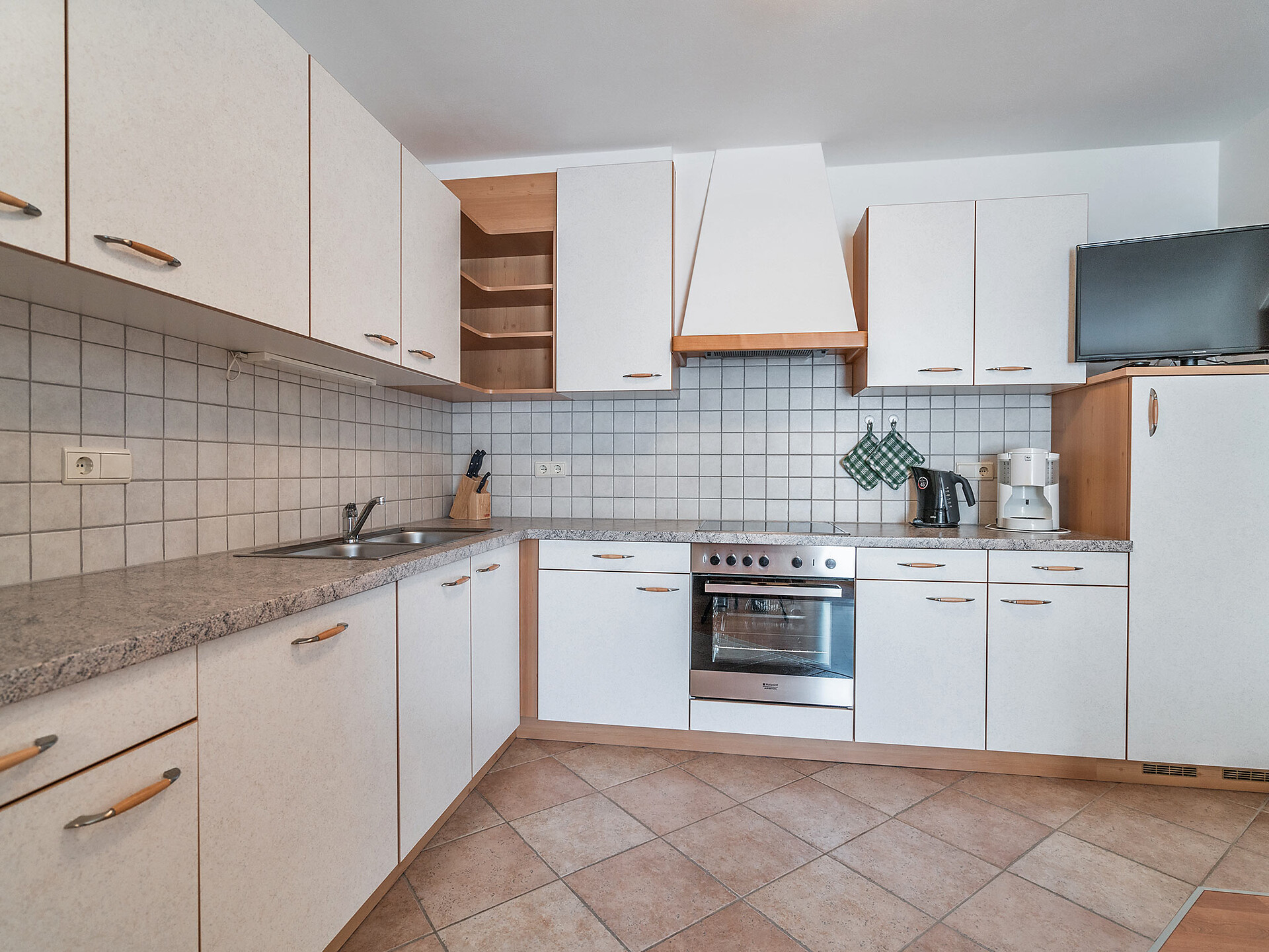 Double bed , Cot, Double sofa bed, Balcony, Garden , Bed linen provided, Eat-in kitchen, Coffee machine, Dishwasher, Electric cooker, Cutlery provided, Shower/Bath tub, Bidet, Towels, TV, Satellite/Cable, WLAN, Internet access, Final cleaning included, Main building, Panoramic view