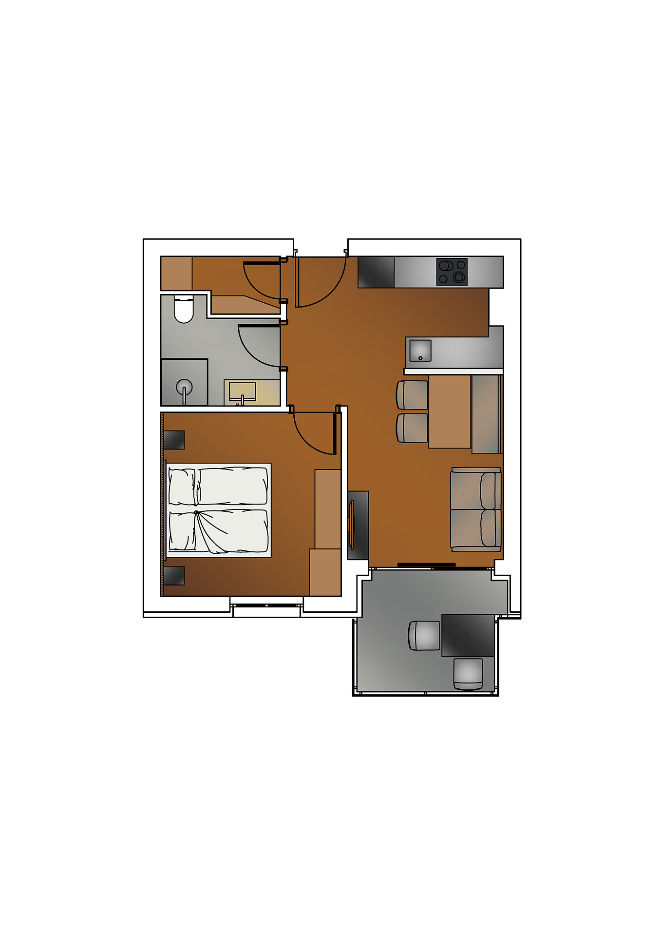 Double bed , Sofa bed, Balcony, Bed linen provided, Safe, Non-smoking apartment, Eat-in kitchen, Coffee machine, Dishwasher, Electric cooker, Microwave, Cutlery provided, Hob, Shower/Bath tub, Hair dryer, Towels, TV, Satellite/Cable, WLAN, Final cleaning included