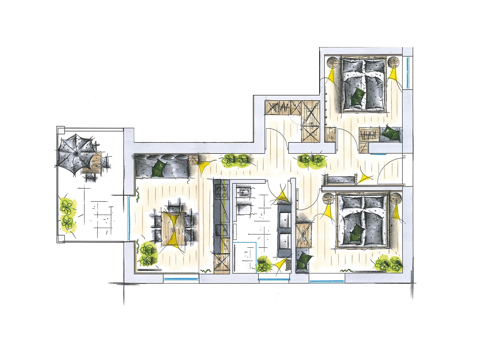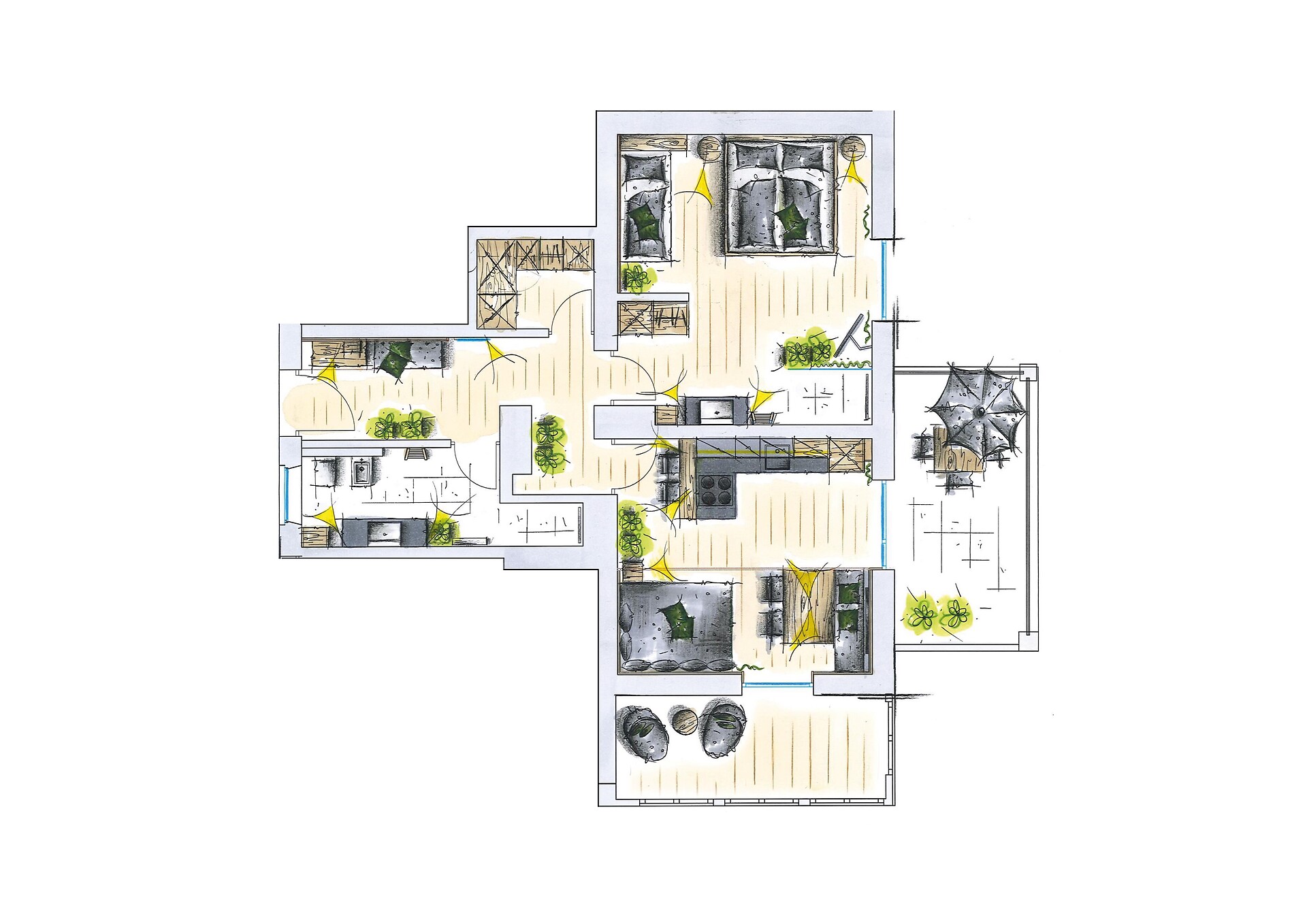Single bed, Double bed , Cot, Terrace, Garden , Separate living area, Bed linen provided, Safe, Non-smoking apartment, Eat-in kitchen, Coffee machine, Dishwasher, Electric cooker, Microwave, Cutlery provided, Hob, Shower/Bath tub, 2 or more bathrooms, Bidet, Hair dryer, Towels, Washing machine in the apartment, TV, Satellite/Cable, WLAN, Final cleaning included, Main building, Panoramic view, South view