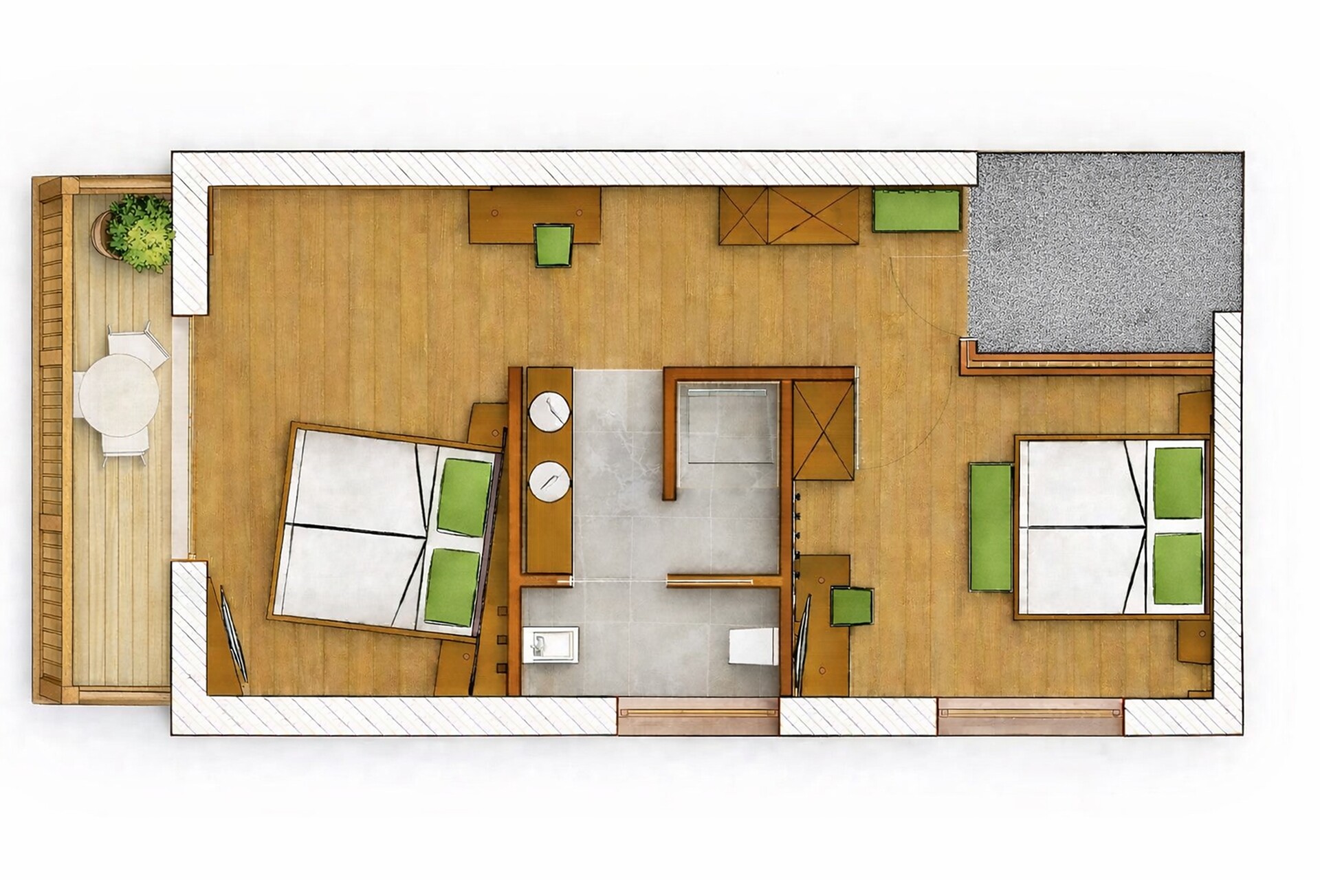 Suite, Double bed , Extra bed, Cot, Sofa bed, Balcony, Terrace, Living area, Room with connecting door, Anti-allergic room, Safe, Shower / Bath tub, Bidet, Hair dryer, TV, Satellite/Cable, WLAN, Internet access, Panoramic view, South view