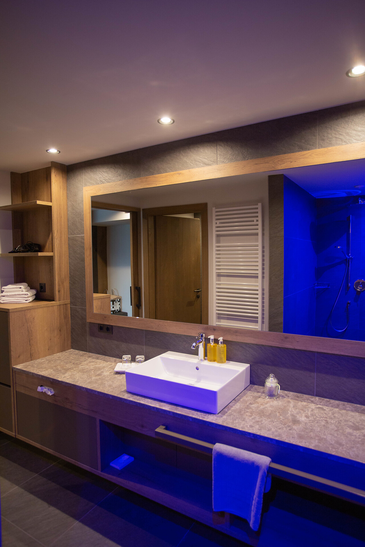 Our luxurious Alpin Lodge with its Alpine ambience is fitted with modern velvets and furniture made from local oak. It features a combined living and bedroom with a seating area, a large bathroom, and a south-facing panoramic loggia for an XXL view.