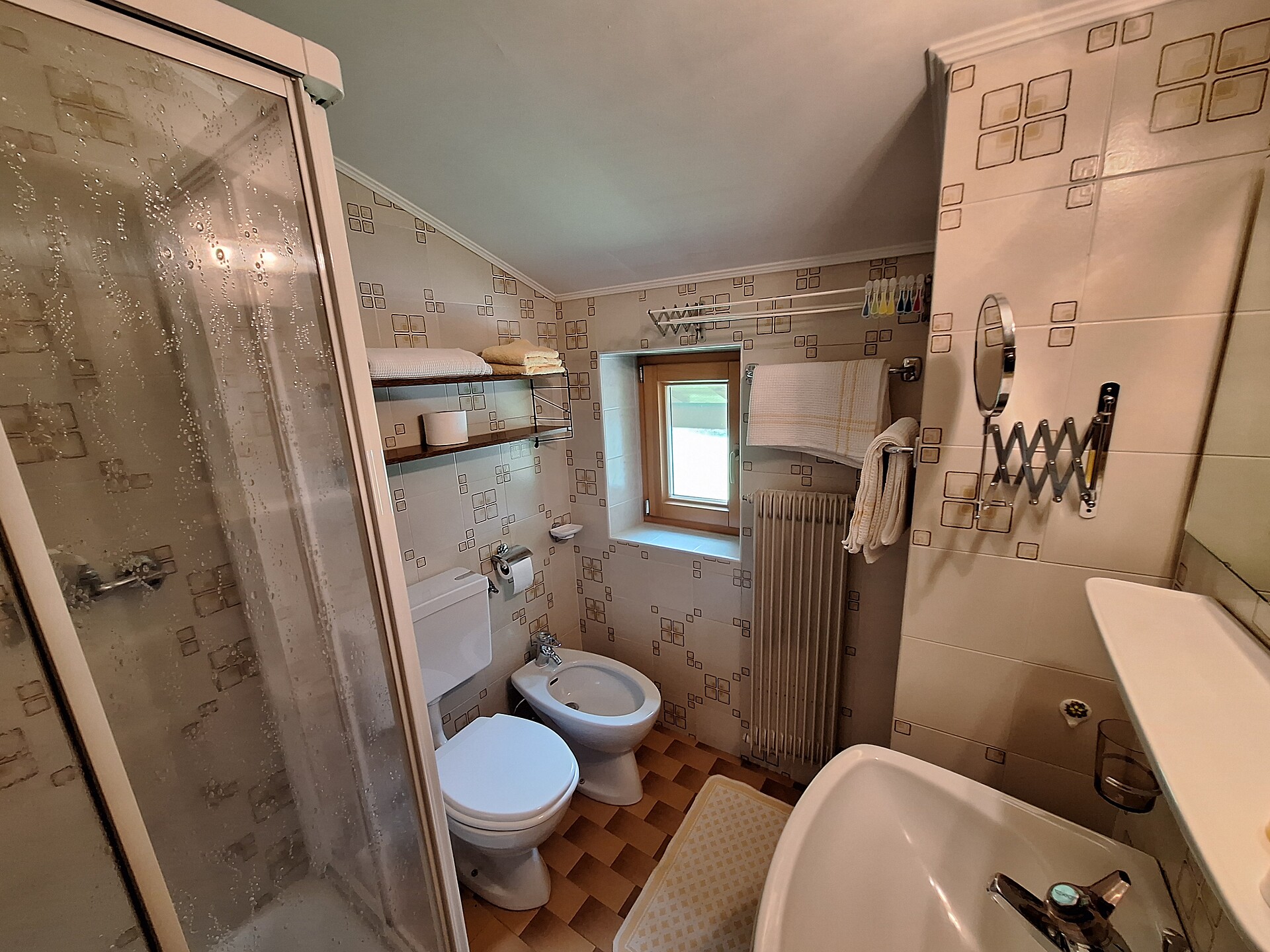 bathroom with shower, WC, bidet, sink an make-up mirror,