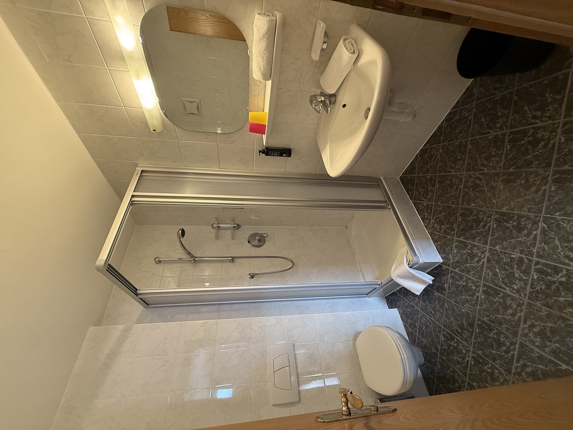 The rooms "Alpen" offer about 12m² and are equipped with single bed, shower/WC, SAT-Tv, safe, hairdryer, desk, carpet, free WIFI and a balcony facing north.